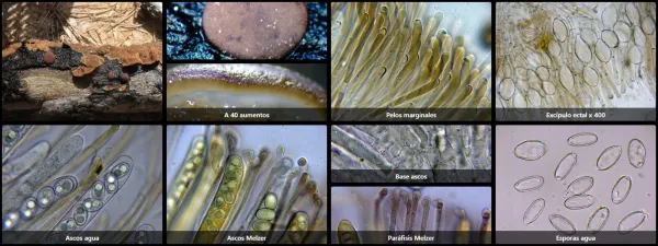 Himenio ubicado en la zona externa del ascoma, es por lo tanto liso y su color varía en función del grado de maduración del ejemplar desde el ocre claro al pardo rojizo oscuro. Produce ascas operculadas de reacción amiloide variable, y esporas más o menos elípticas y granuladas.