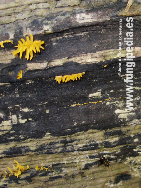 Es este un hongo muy común y fácil de reconocer por sus fructificaciones eréctiles y gregarias de consistencia gelatinosa y color amarillo. La Calocera viscosa es bastante más grande, más viscosa, ramificada, y además tiene hábitat preferencial entre las coníferas. Otros hongos amarillos que salen en el mismo hábitat y con consistencia similar, tienen formas discoidales o están plegados, ninguno es eréctil.