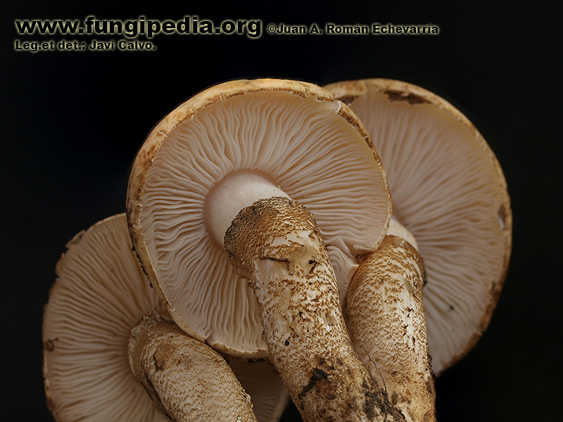 Sombrero que en estado primordial se muestra globoso sobre el pie, pero que según se va desarrollando pasa a ser algo campanulado, después convexo y finalmente plano-convexo, sin llegar a embudarse, algunos ejemplares con el centro resaltado sin formar umbón. Tiene un diámetro que en los especímenes adultos oscila entre los 5 y los 8 cm, y una cutícula lubrificada en tiempo lluvioso, sino se muestra más bien seca y algo sedosa, de un color crema predominante en nuestra recolecta, pero pudiendo adoptar algún tono ocráceo, sobre todo hacia el centro. Esta cutícula puede presentar máculas de forma un tanto aleatoria, o simplemente no presentarlas, margen algo incurvado de joven, pudiendo presentar flocones que luego tienden a desaparecer. Los ejemplares muy jóvenes pueden tener gotas ambarinas en el margen.