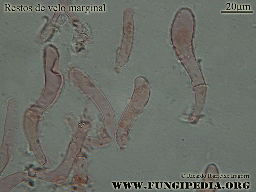Sombrero cuyo diámetro suele oscilar entre 1 y 3 cm, de forma hemisférica en los primeros estados de desarrollo, posteriormente convexa a plano-convexa, no llegando a aplanarse del todo. Cutícula algo rugulosa o crespada de aspecto seco, de color ocre, generalmente con el centro un poco más resaltado y oscuro, pero que en función del grado de humedad puede tener matices leonados, o amarillentos si está más seca. Posee restos de velo en forma de copos, sobre todo en ejemplares jóvenes, que en el margen quedan apendiculados otorgando un bello aspecto al basidioma.