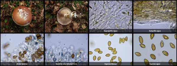 Sombrero de notables dimensiones, puede alcanzar los 20 cm de diámetro, de forma globosa cuando es joven, luego convexa, sin llegar nunca a aplanarse del todo. Es fundamentalmente pardo, aunque con matices vinosos o violáceos, y suele estar adornado con copos blanquecinos, que muchas veces desaparecen por causa de la lluvia. Algo viscoso y brillante en mojado, con el borde involuto durante bastante tiempo.