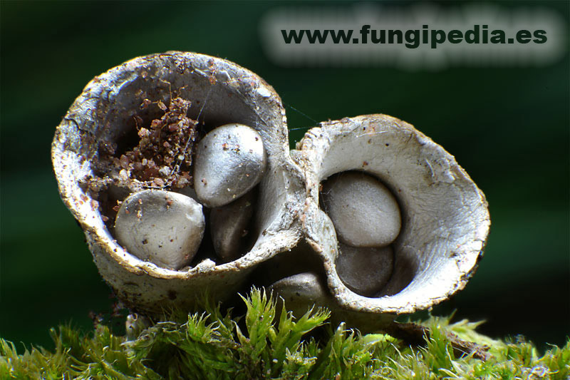 Gleba constituida por una especie de huevos de pequeño tamaño llamados peridíolos, estos son la parte fértil del carpóforo y albergan en su interior las esporas y basidios, suelen ser de color gris, a veces casi negros, y tienen forma lenticular. Estos peridíolos tienen un tamaño de unos 3mm y permanecen unidos al endoperidio por un filamento bastante tenaz, el número de peridíolos que tiene cada espécimen es un carácter variable.