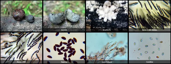 Himenio liso pero punteado por los ostiolos, parte visible que culmina los peritecios formando una capa de 1 mm aproximadamente en la zona periférica del carpóforo con una cobertura de aspecto similar al carbón. Es en estos peritecios donde se albergan las ascas que al madurar liberan las esporas a través de los ostiolos.