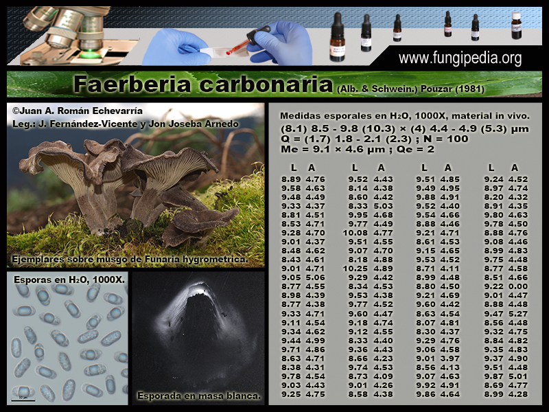 Especie que ha pertenecido a numerosos géneros diferentes, Merulius, Lentinus, Geopetallum, Cantharellus, hasta ser reconvertida en 1981 a Faerberia, de hecho fue Cantharellus durante mucho tiempo, aunque existen diferencias micro y genéticas con respecto a estos. Se caracteriza por su sombrero embudado negruzco, láminas prietas y anastomosadas, y su presencia en zonas quemadas. Guarda similitudes macroscópicas con el Cantharellus cinereus, especie más pequeña, propia de bosques de frondosas y con un característico olor a ciruela que esta especie no tiene. Microscópicamente tiene cosas de diferentes géneros, sistema hifal dimítico como los Aphyllophorales, cistidios metuloides como las Hohenbuehelia, por lo que se creó un nuevo género para ella, dada su dificultad taxonómica.