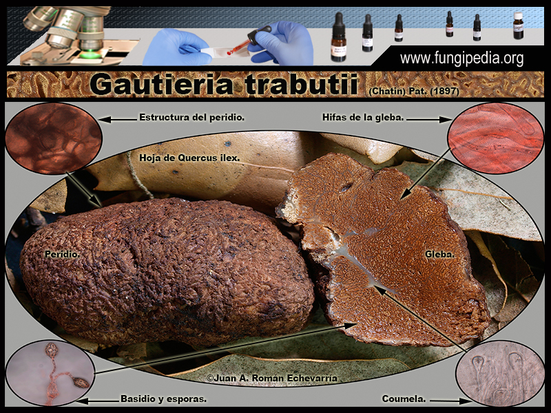 Peridio formado por células globosas o esferocistos, extremadamente delgado, entre 0´2 y 0´5 mm solamente, además es evanescente, se esfuma con facilidad, algo bastante común en las especies del género Gautieria. Suele tener un color blanquecino o crema, fácilmente manchado de roña con tonos ferruginosos, al desaparecer deja entrever cavidades ocres provenientes de la gleba.