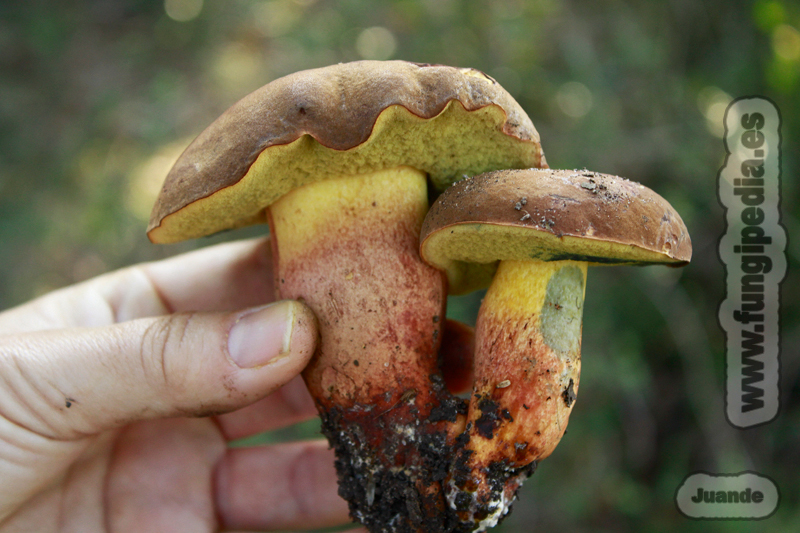 Poros redondos, pequeños y bastante iguales, de color amarillo de jóvenes, con la vejez se abren un poco y se vuelven oliváceos o pardo oliváceos ya de muy viejos. Al igual que los tubos azulean al ser presionados.