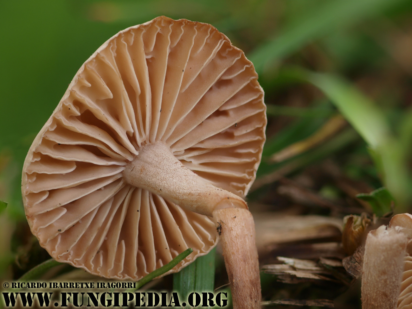 Se trata de una especie caracterizada por su color ocre claro o crema común a todo el basidioma, y el oscurecimiento del pie a partir de la base. Taxón de reciente creación, año 2000, no hemos encontrado citas de ella para el País Vasco ni tampoco para la península, podría tratarse de una primera cita. Es muy parecida a la senderuela o Marasmius oreades, hemos de fijarnos en el pie para diferenciarlas, en esta oscurece y a la torsión casca mientras que el pie del Mararasmius oreades aguanta a la torsión sin quebrar. Existe una especie macroscópicamente idéntica e igualmente rara, Marasmiellus carneopallidus, solo separable por pequeños detalles microscópicos.