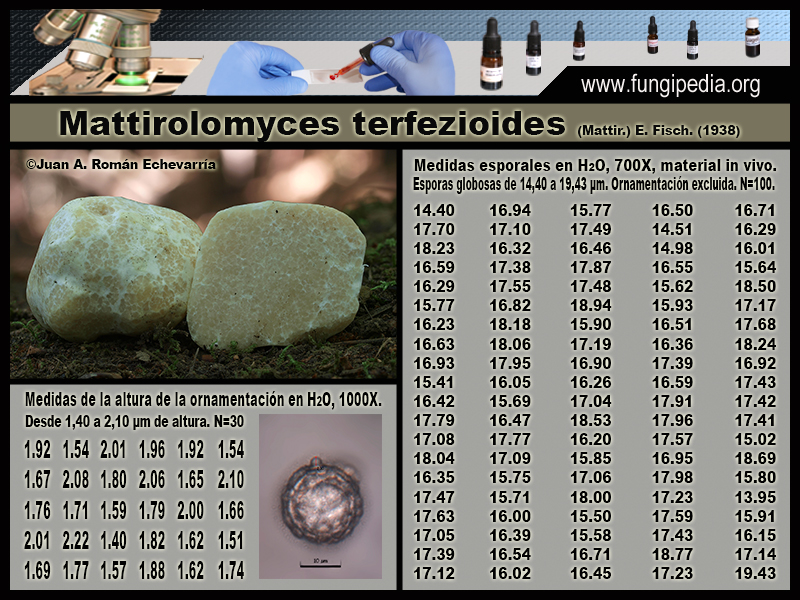 Carpóforo que rara vez se presenta de forma globosa, habitualmente con forma variable, más o menos oblongo pero bastante irregular, con presencia de numerosas protuberancias o hendiduras, que en ningún caso forman ningún tipo de cavidad, pero siempre con la típica forma tuberculada o de patata habitual en las especies hipogeas. Es de color blanco bastante satinado, tendente a ensuciarse de ocre con la manipulación, y su tamaño es también muy variable, en los ejemplares objeto de estudio entre 3 y 8 cm de diámetro, si bien pueden alcanzar en ocasiones tamaños bastante más grandes, superando incluso los 15 cm.