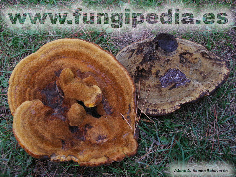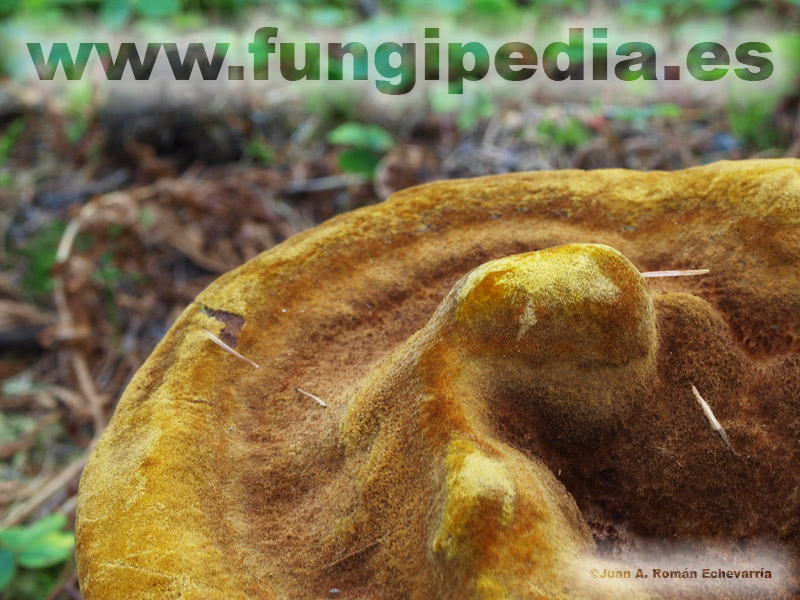 Es una seta de aspecto ciertamente feo, caracterizada por su tamaño grande, su superficie pilosa o tomentosa de color amarillo a marrón y su himenio con poros grandes. Descrita muchas veces como inconfundible, creemos que macroscópicamente no es nada fácil separarla de la Onnia tomentosa, especie que comparte hábitat, de colores similares, de textura similar, las únicas diferencias claras son su menor tamaño y sus poros más pequeños.