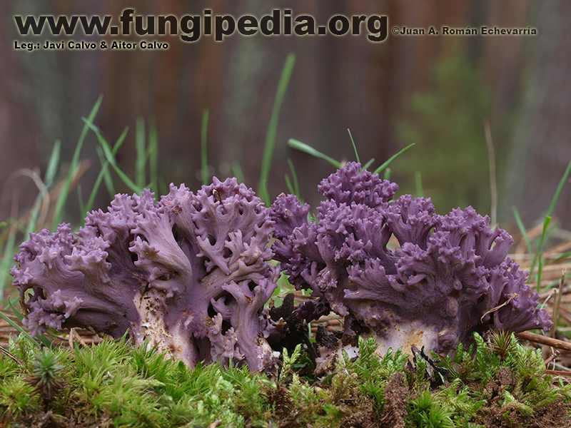 Carpóforo de un tamaño considerable, puede superar los 10 cm de altura sin problema, prolongándose a lo ancho hasta a veces más de 15 cm. Tiene forma ramificada, de un tronco central parten algunas ramificaciones, que a su vez se dividen en nuevas ramificaciones, superficialmente surcadas, que acaban en el ápice en varias puntas crispadas o romas, especialmente achatadas en los ejemplares más jóvenes. Estos ejemplares jóvenes tienen un color lila amatista intenso muy bello y característico, que con el tiempo y el desarrollo se va difuminando hacia tonos cremas, pero manteniendo bastante tiempo algún matiz liláceo, los especímenes más viejos se vuelven de color crema ocráceo.