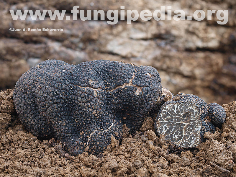Esta especie es un excelente comestible a pesar de no llegar a tener el aroma de otras trufas, es por ello que su valor de mercado es notablemente inferior a ellas. Se trata de una especie muy variable que ha dado lugar a múltiples variedades, caracterizada por su frágil peridio verrucoso no adherido a la gleba y que se desprende con la manipulación, así como por sus venas amplias siempre de color blanco. El Tuber melanosporum es una especie ciertamente similar con la que comparte hábitat y época de aparición, tiene un aroma notablemente más intenso, su peridio si está adherido a la gleba por lo que no se desprende fácilmente y sus venas son mucho más estrechas.