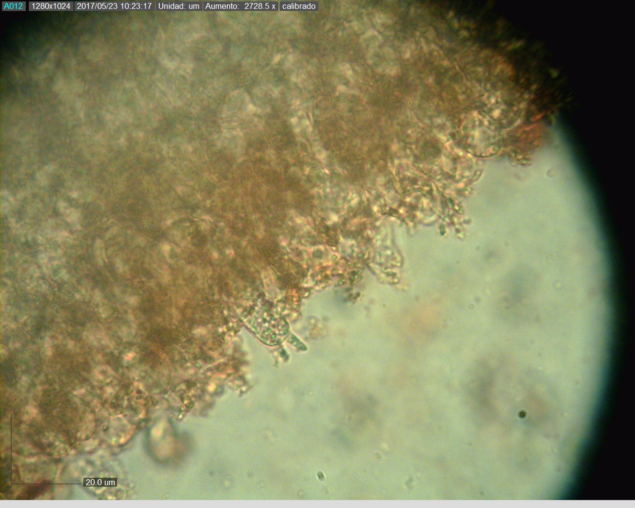los basidios, nos pareció ver bisporicos y tetraspóricos, pero estaban muy incrustados y nos costaba bastante