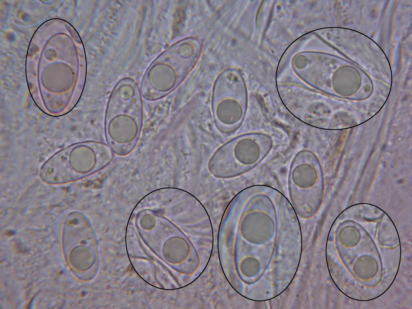 Las ascas mayoritariamente de 8 esporas, aunque pude observar una de 5 esporas, dejo la imágen: