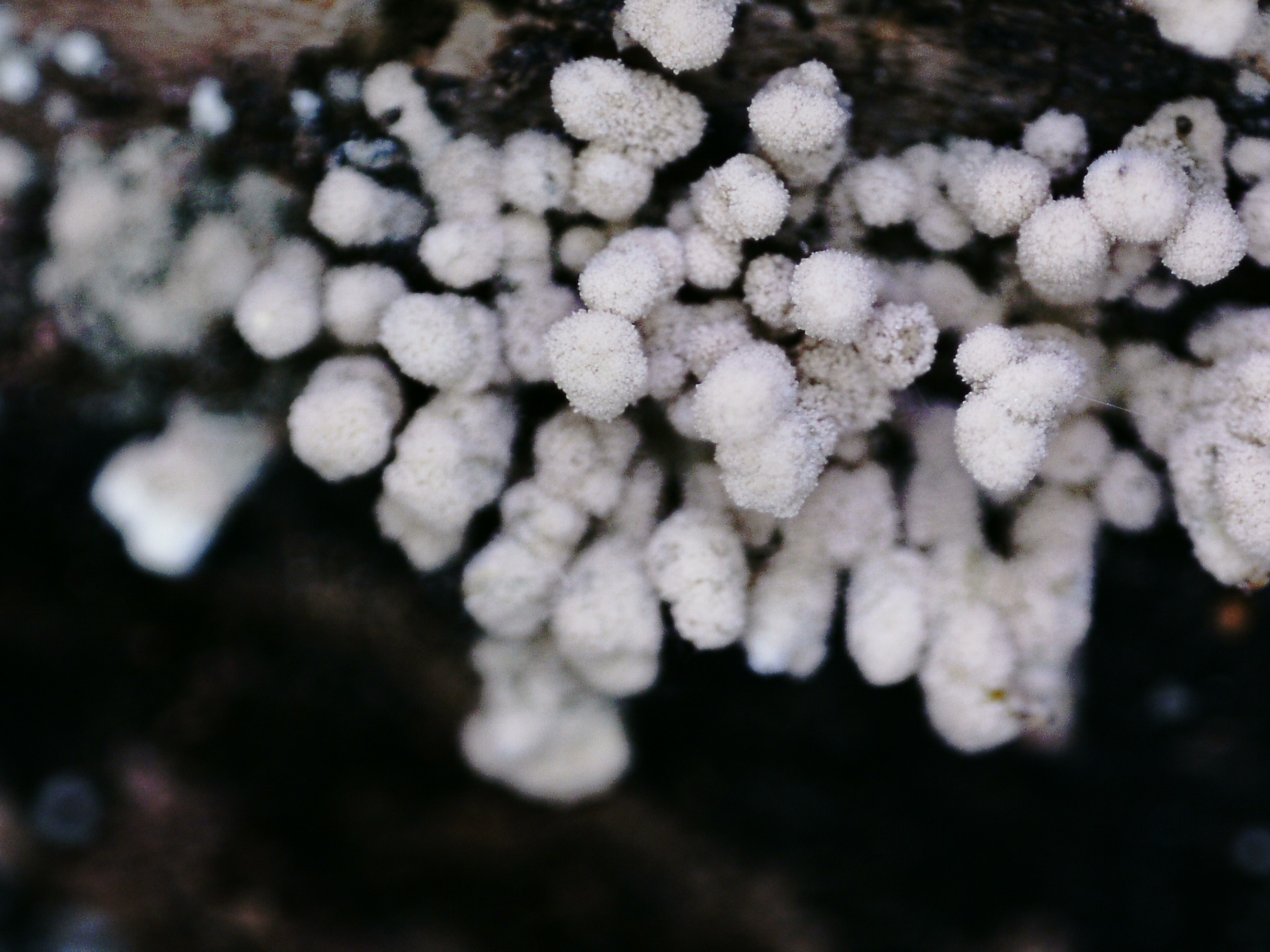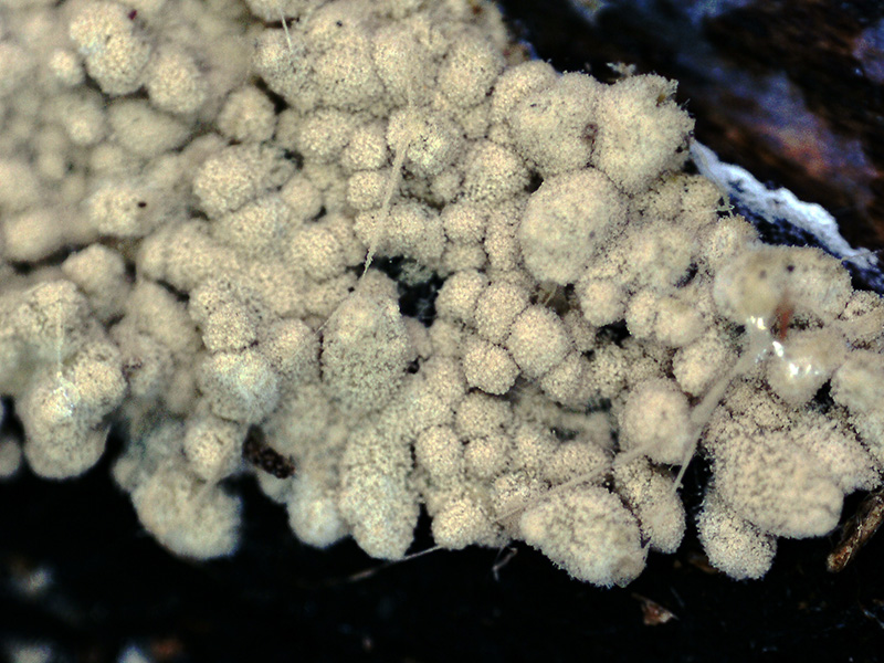 Pequeñas fructificaciones de forma entre globosa y piriforme, de color crema blanquecino, muy agrupadas entre sí de entre 0,5 y 1,2 mm. de diámetro, sesiles y con la superficie pilosa.