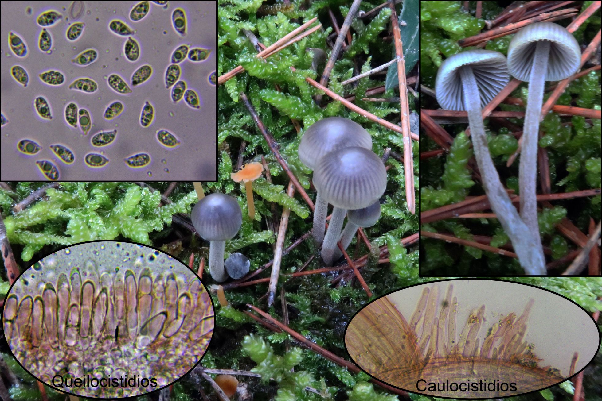Nota: Buscando en mis archivos me he encontrado con un estudio del 4 de Noviembre de 2018 de lo que en su momento identifiqué como Mycena amicta, en aquella ocasión el borde del sombrero no presentaba esta típica coloración azulada, aunque esta característica al parecer no sería constante y se considera bastante habitual que no la presente, dejo una imágen del estudio realizado en aquel entonces: