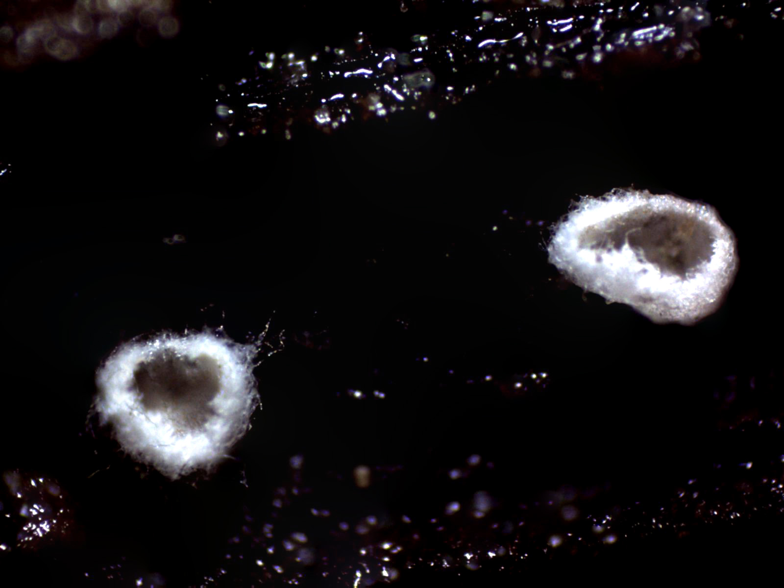Apotecios a 40 aumentos, de tan solo entre 0,50 a 0,80 mm. con el borde piloso: