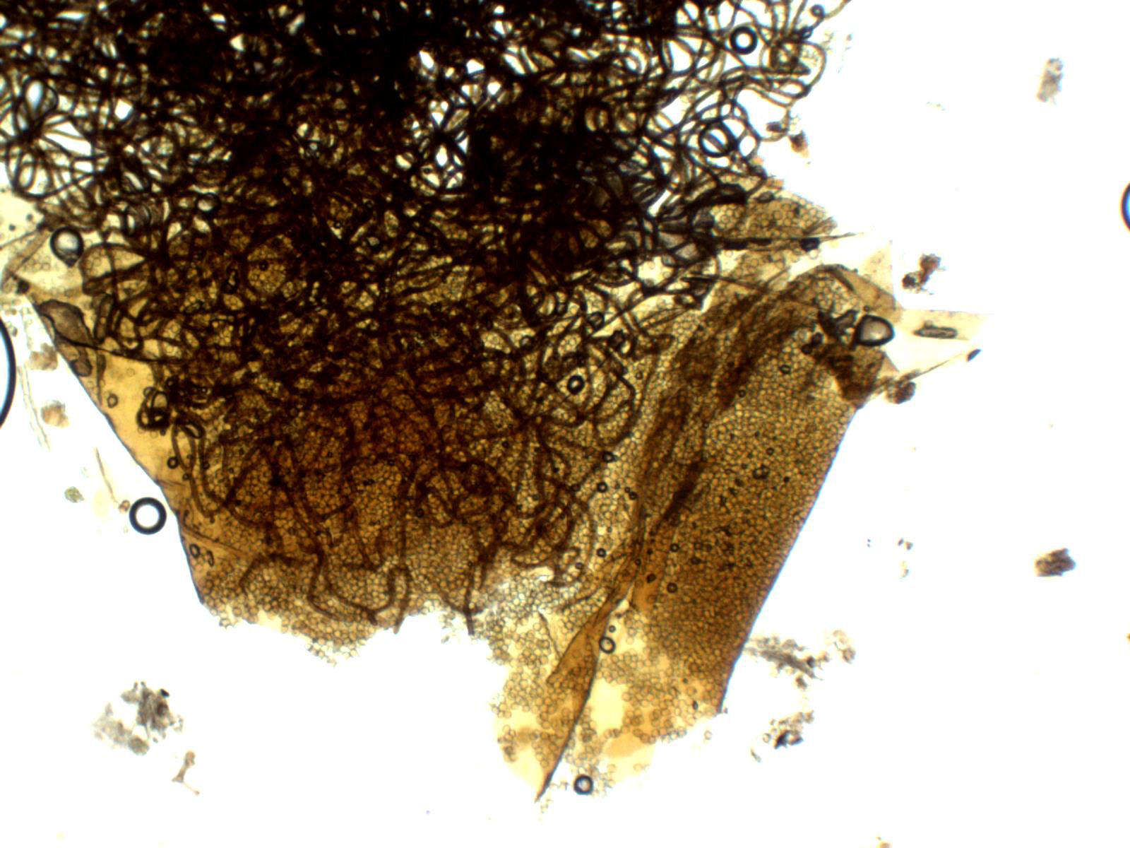 Capilicio muy ramificado sin apenas extremos libres observados, el capilicio a 100 aumentos: