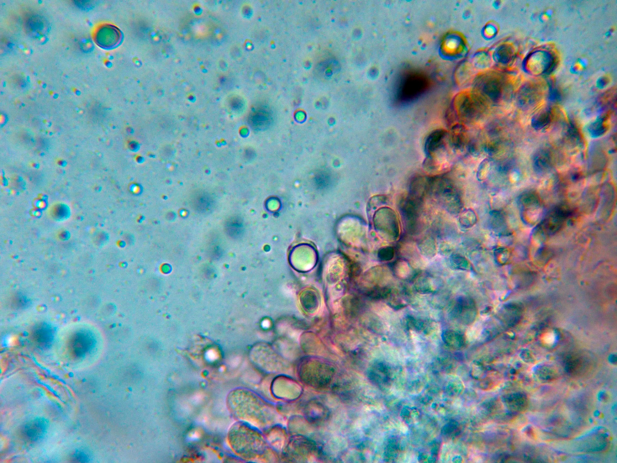 Estos queilocistidios son más visibles utilizando Hidróxido amónico (NH4OH)