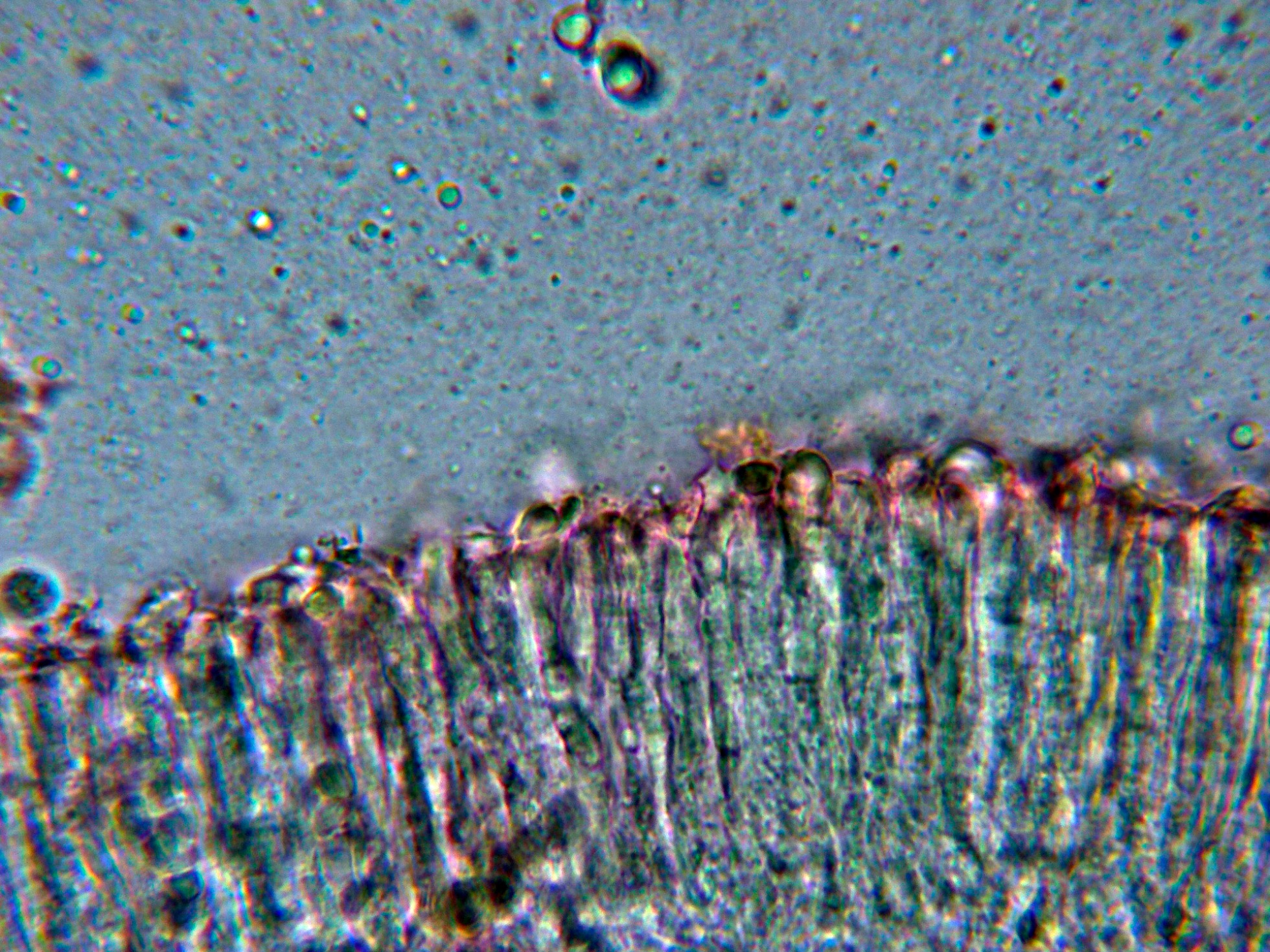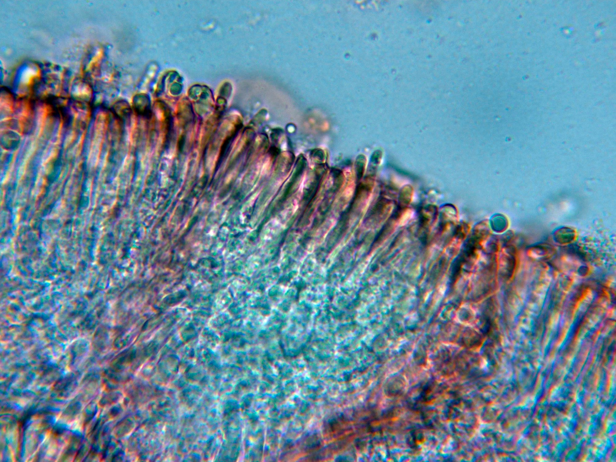 Hifas del contexto ensanchadas y algunas provistas de gruesas fíbulas.