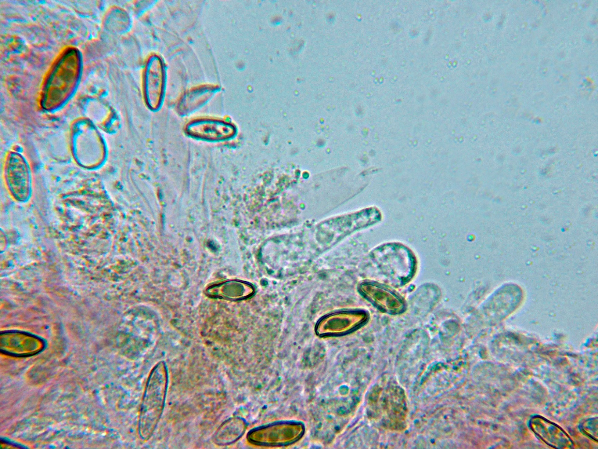 Observaciones: Admito que en el momento de ponerle apellido tuve serias dudas en cuanto a su identidad, con esporas truncadas tenemos también el parecido Xerocomellus truncatus, al parece este último más propio de coníferas (hábitat por el que nos estuvimos moviendo durante toda la mañana), considerándose al Xerocomellus porosporus más propio de planifolios, especialmente hayedos, y aunque hay varios autores que tienden a dar ambas especies por sinónimos, según el trabajo de Demetrio Merino, estas se pueden separar por las medidas esporales, con esporas de menor tamaño para el Xerocomellus truncatus, dejo el enlace: