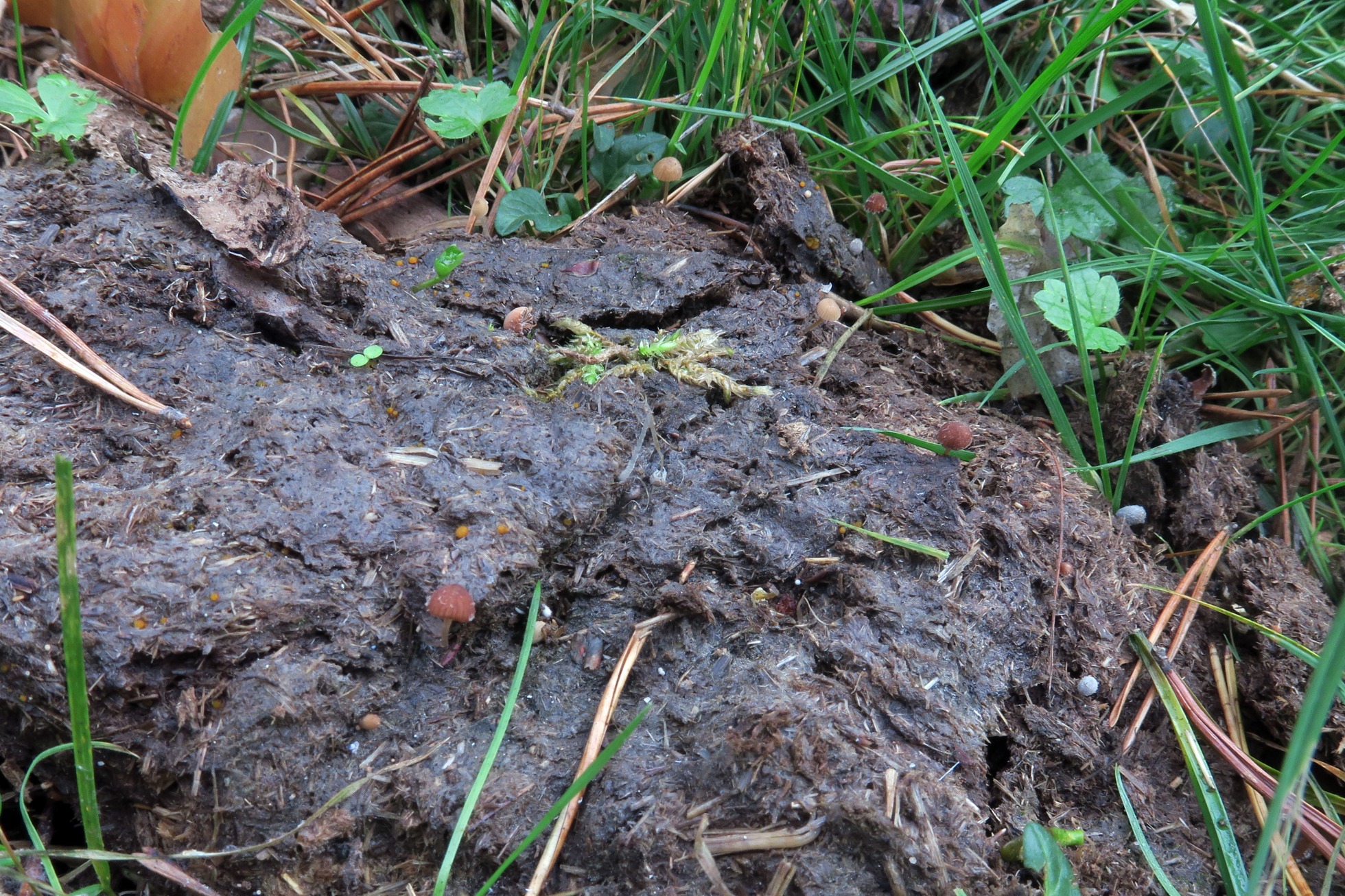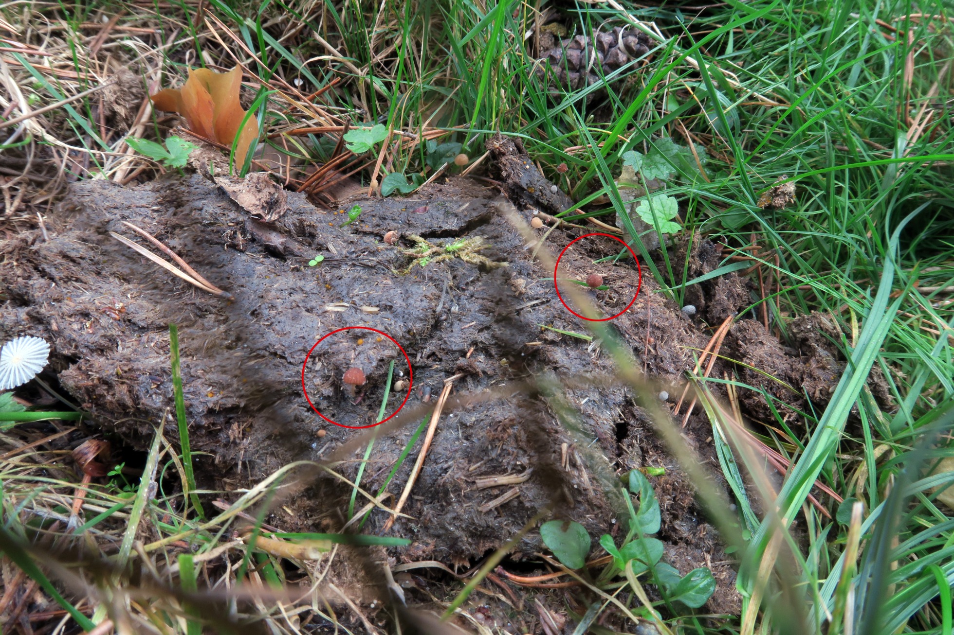 De la salida del 30 de Octubre con los maestros, sobre excrementos de ganado vacuno y al lado de la Cheilymenia, un Panaeolus: