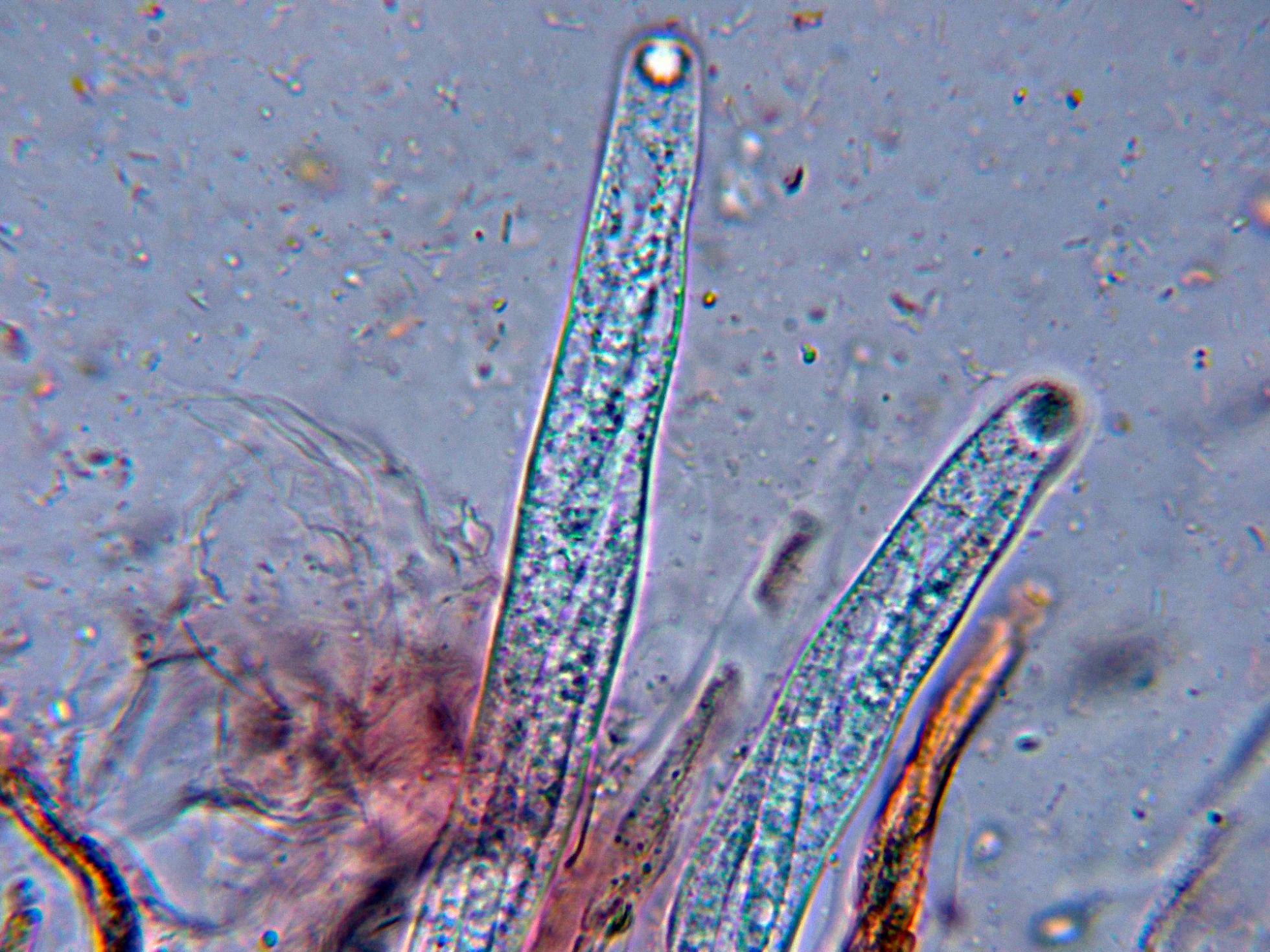 Los ascos con un globulo subapical completamente esférico y con un diámetro de 4 a 5 micras.