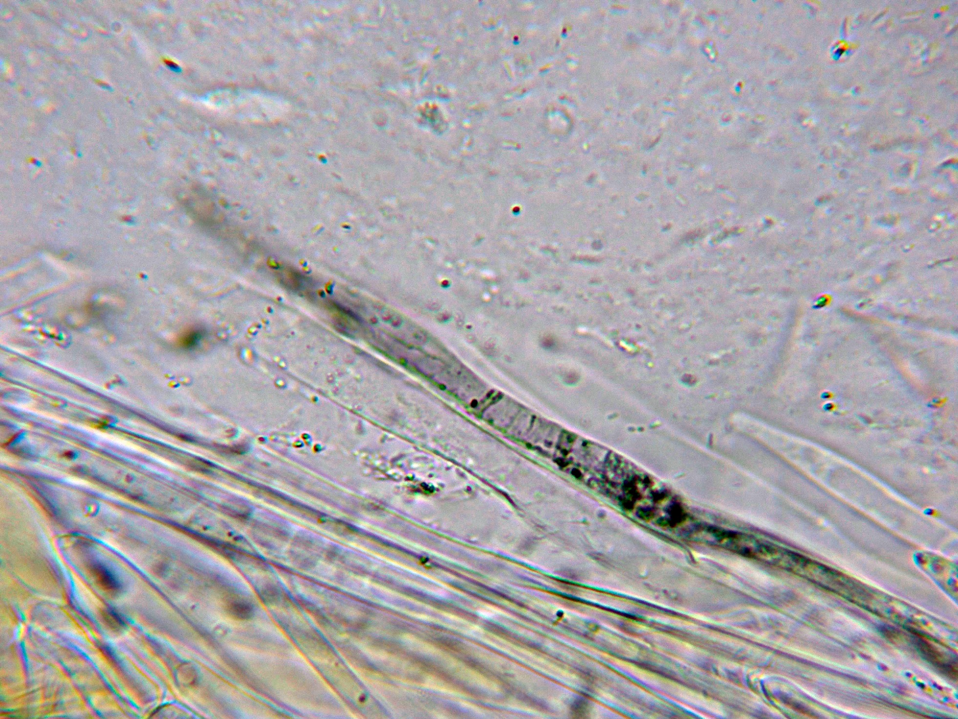 Hifas de la pileipellis sin fíbulas y con pigmento intracelular amarillo que le confiere su especial color: