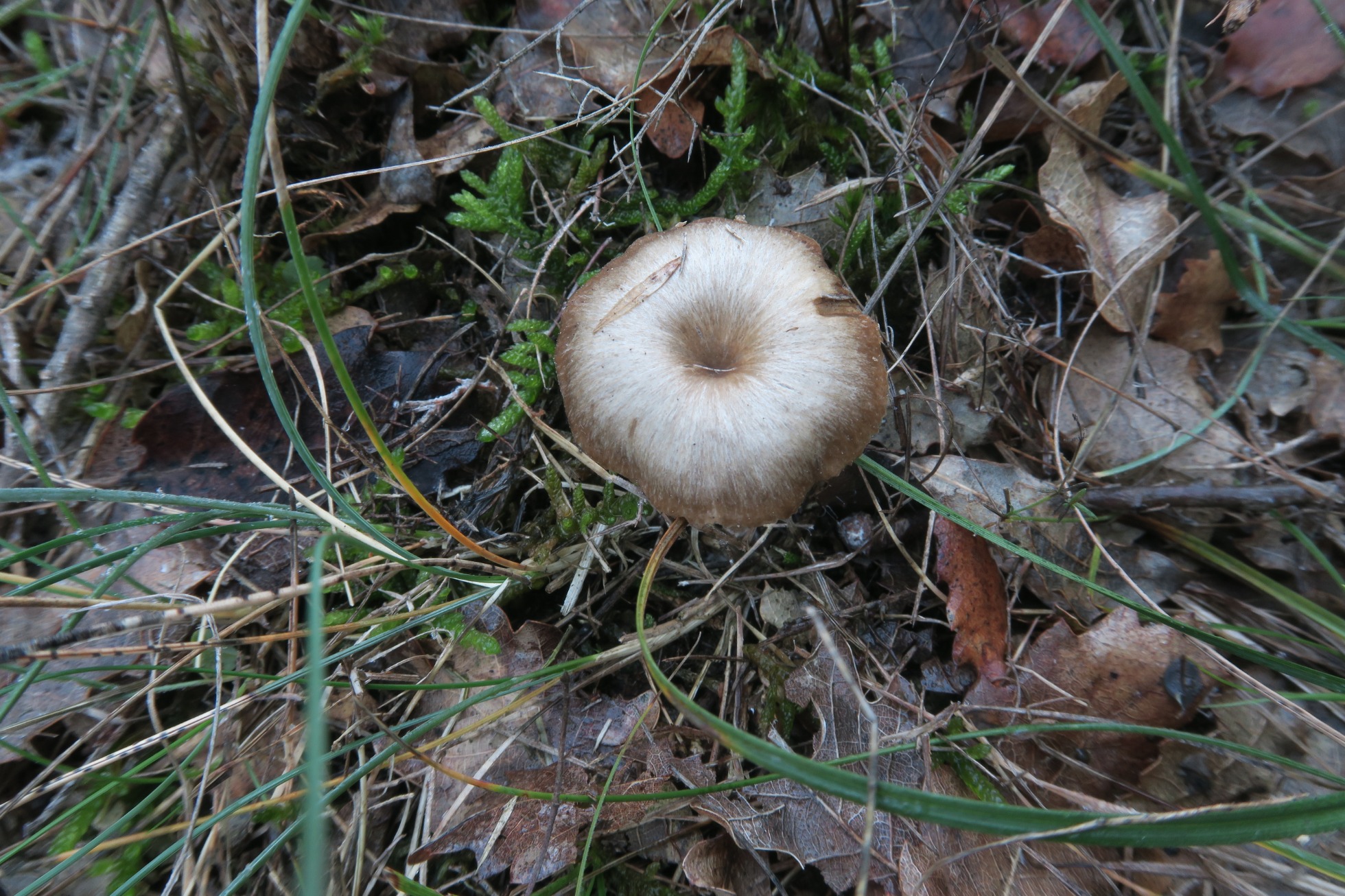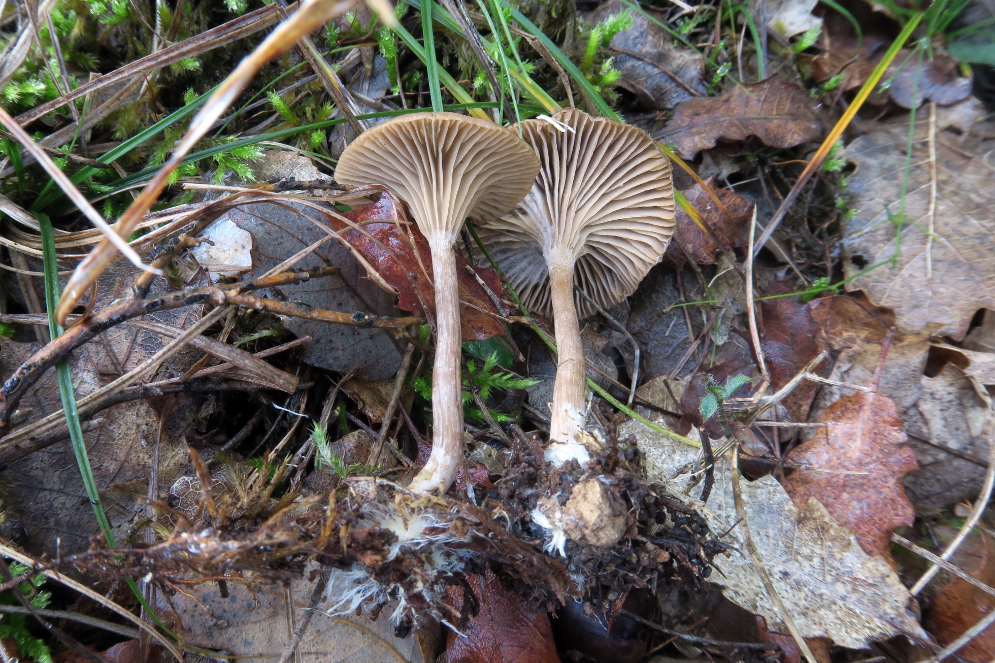 Pienso que si es de reciente creación es solo porqué su aspecto no llama mucho la atención, cuando lo encontré pensé en una Omphalina obscurata u Omphalina griseopallida decolorada (actualmente incorporados a Arrhenia), afortunadamente me llevé unas muestras.