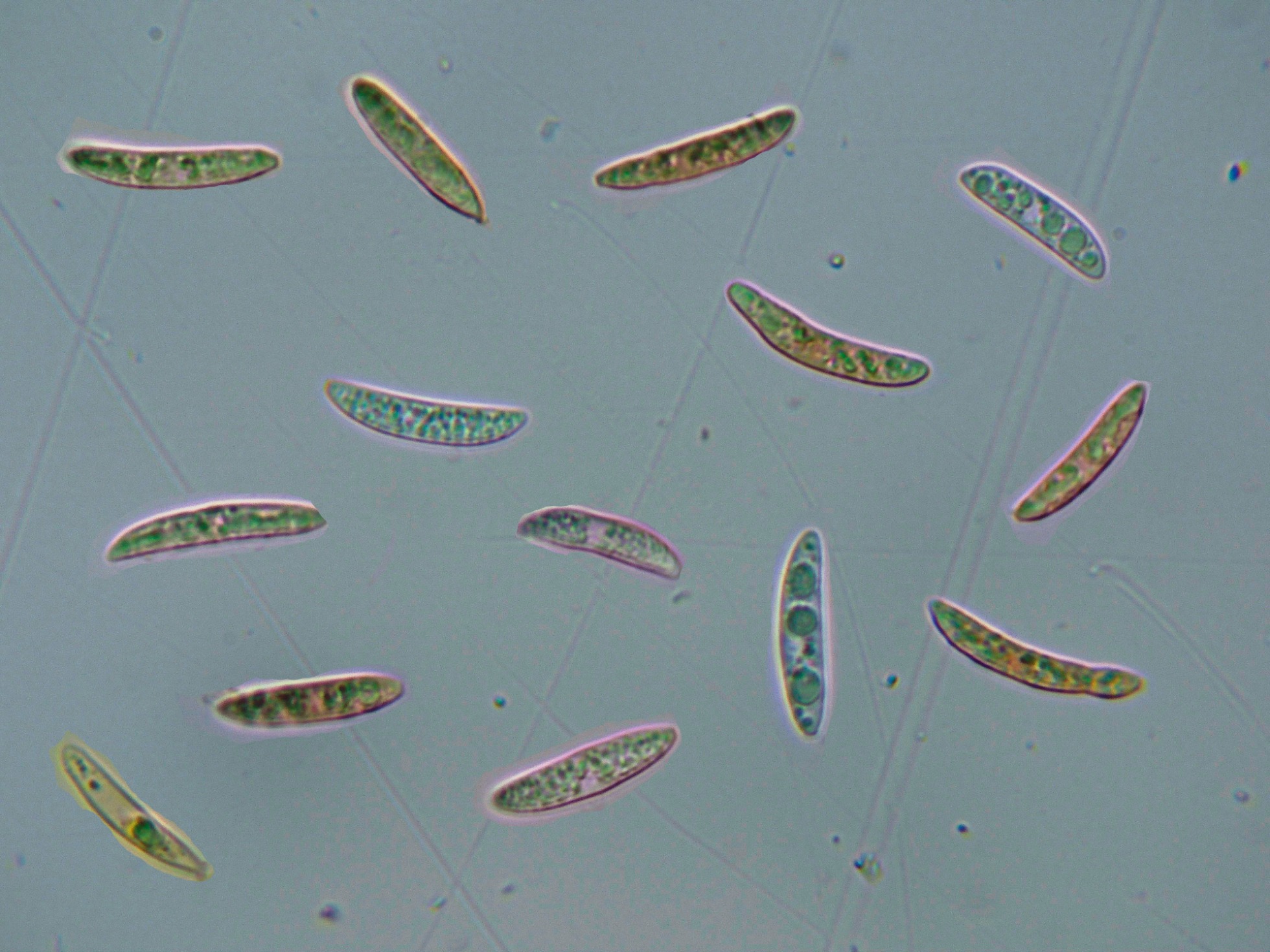 Medidas que encajan perfectamente con la bibliografía del mismo, que atribuyen al Colletotrichum trichellum unas medidas conidiales de 14-24 x 4-6 µm.