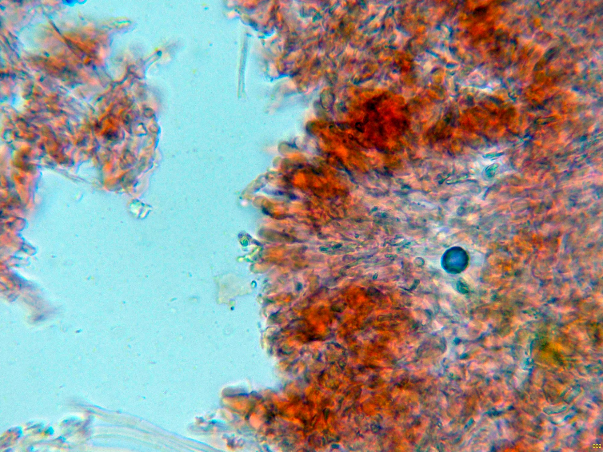 Superficie del basidioma a 20 aumentos.