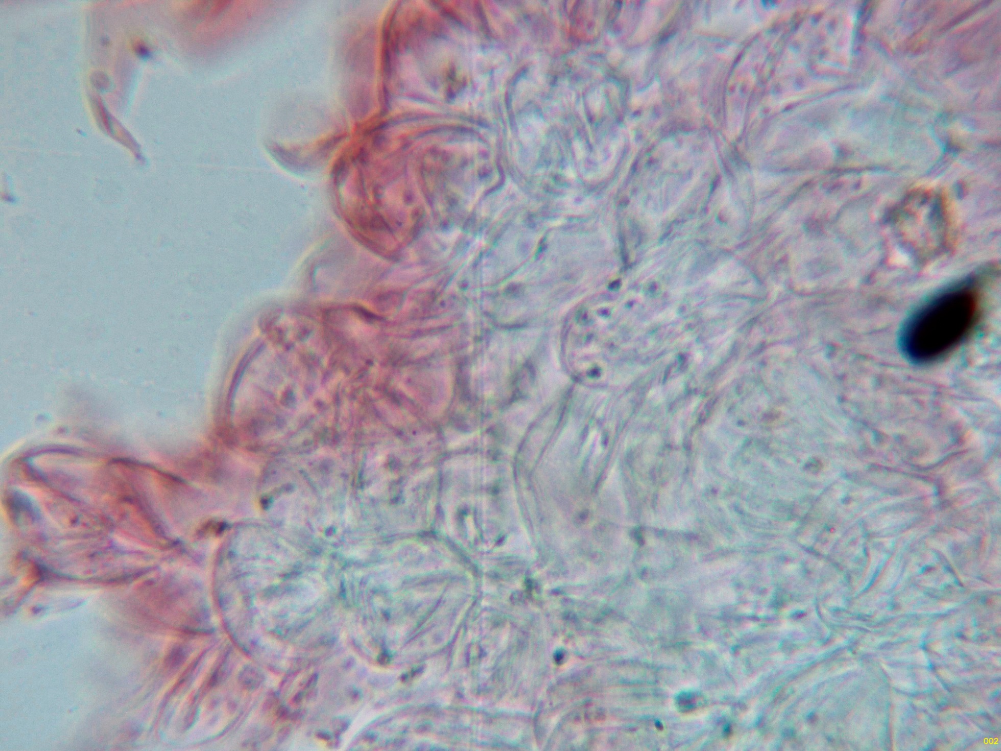 Las hifas de la suprapellis, como todas las Psathyrellas celulósica.
