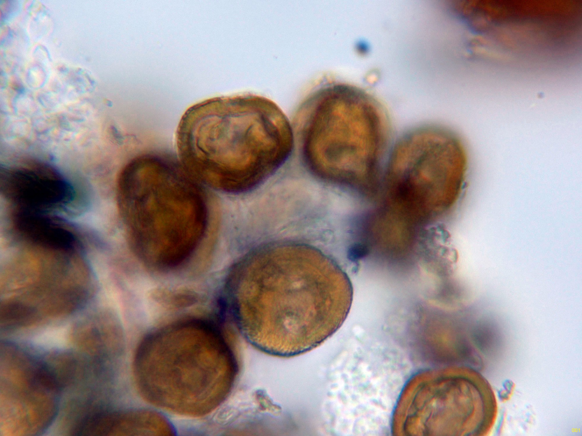 Estas eciosporas con unas medidas de (25.4) 26 - 26.5 (27.4) × (22.2) 22.22 - 25.5 (25.6) µm.
