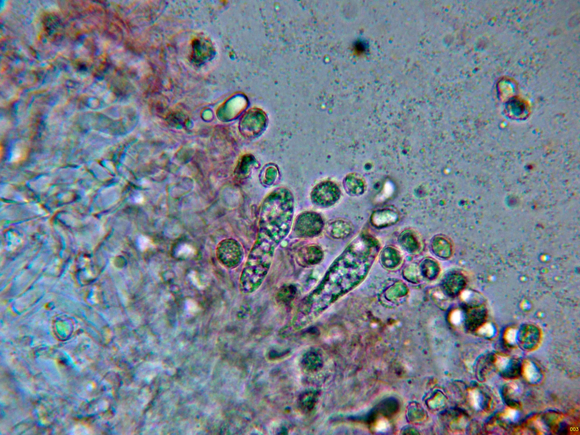 Las hifas de la suprapellis en agua, con hifas provistas de gruesas fíbulas.