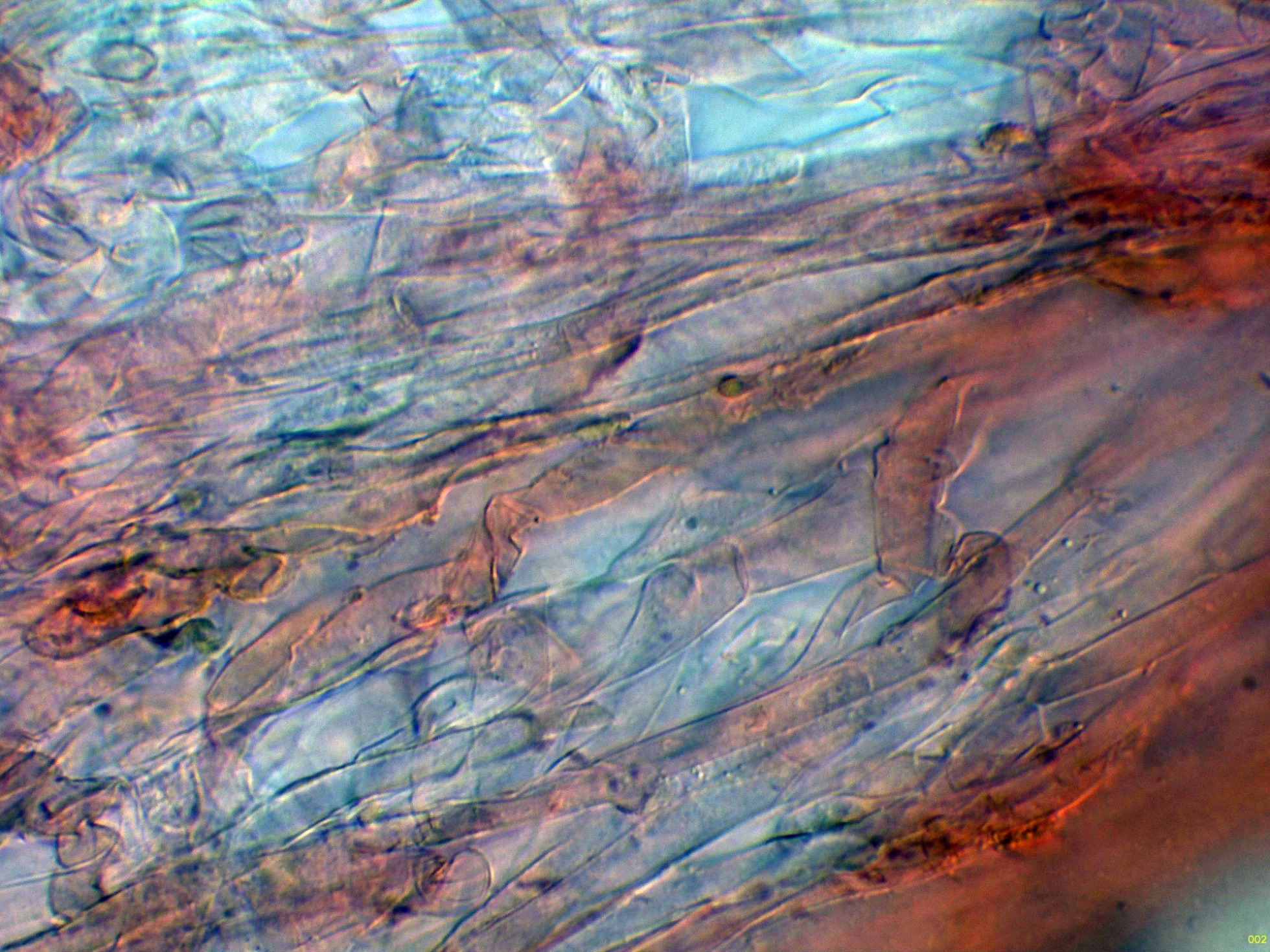 Hifas de la suprapellis en reactivo de Melzer: