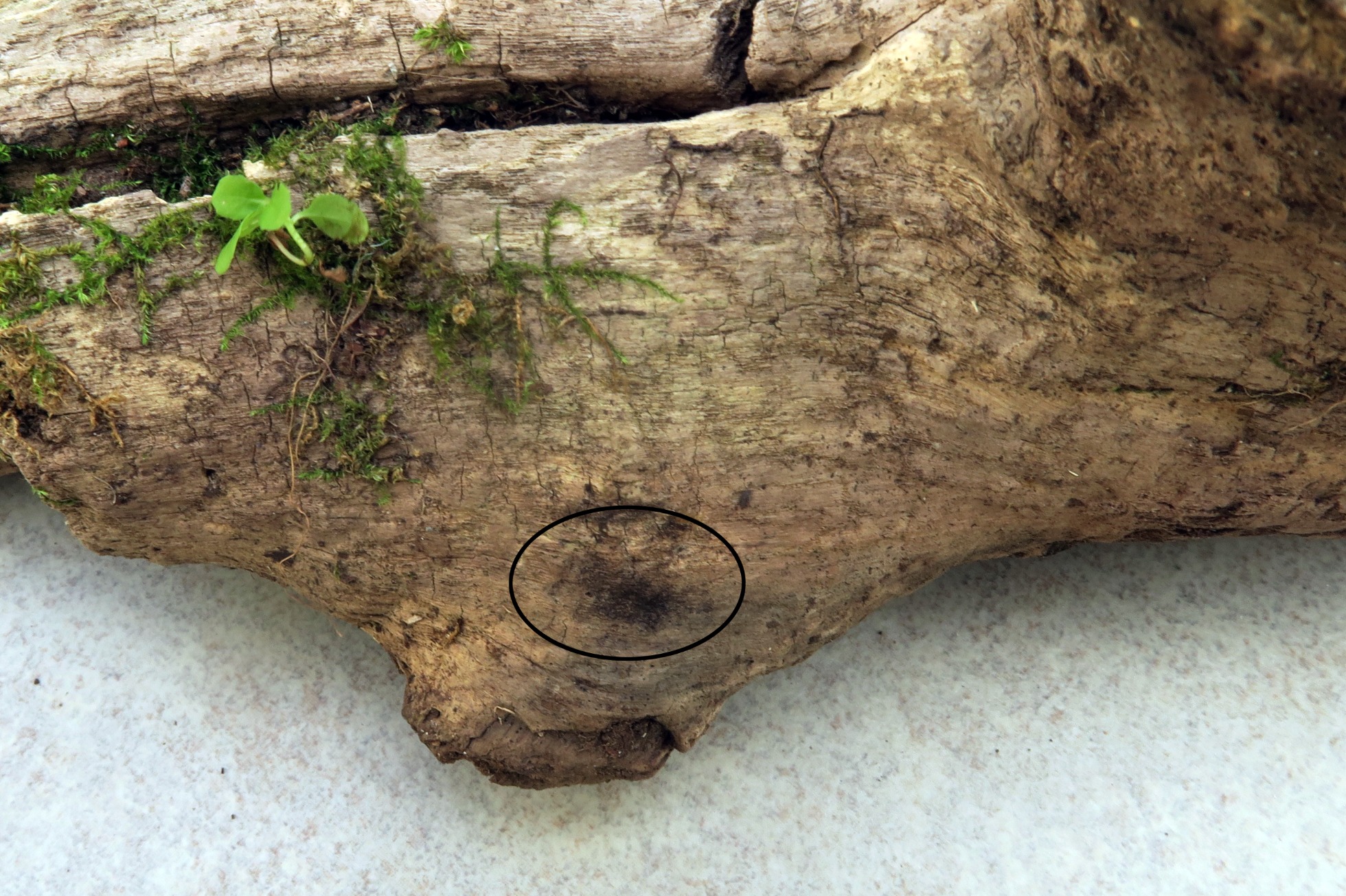 En la imágen la zona donde aparecían los apotecios: