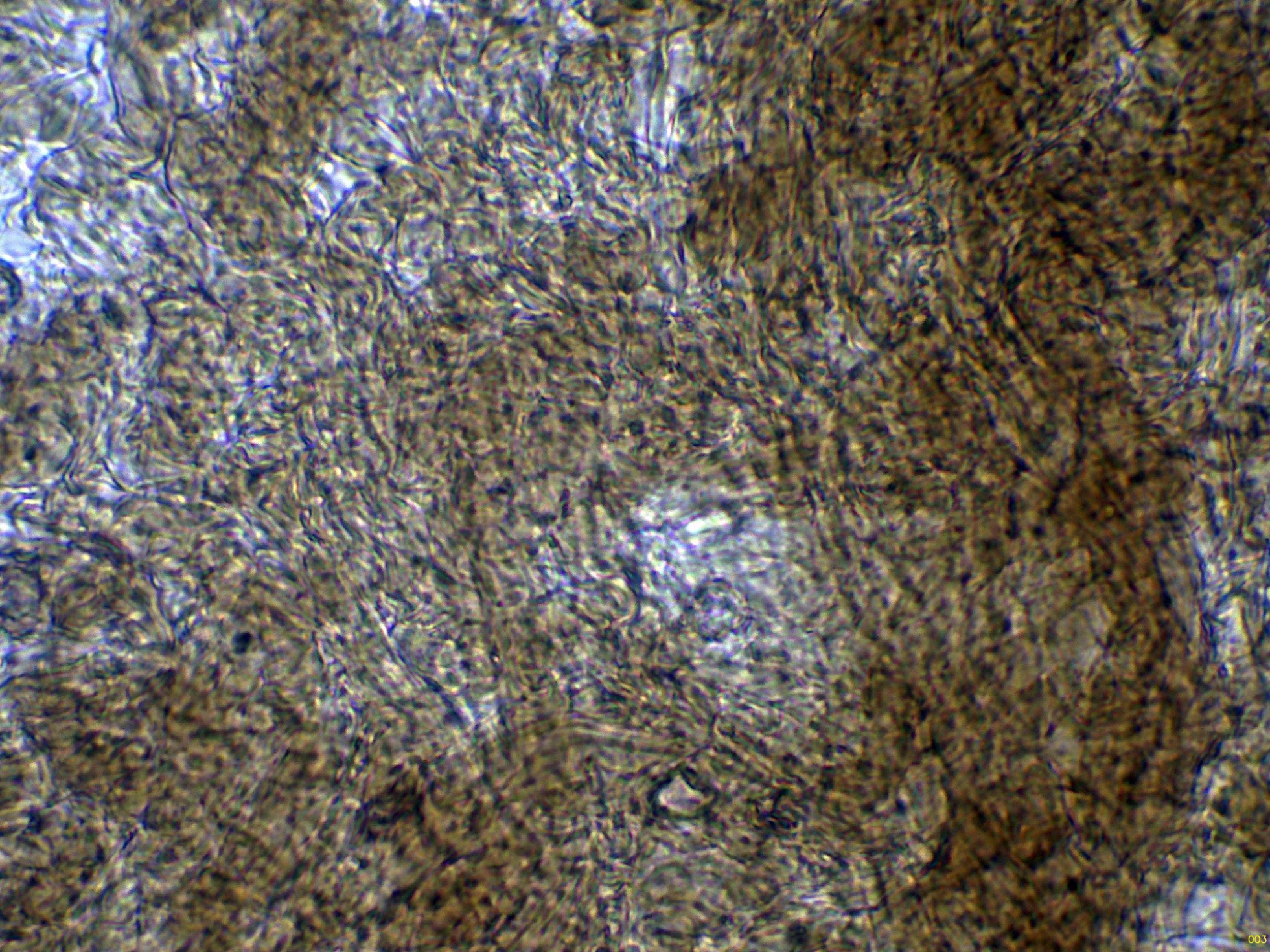 Las hifas del pie en agua, con pigmento intracelular marrón: