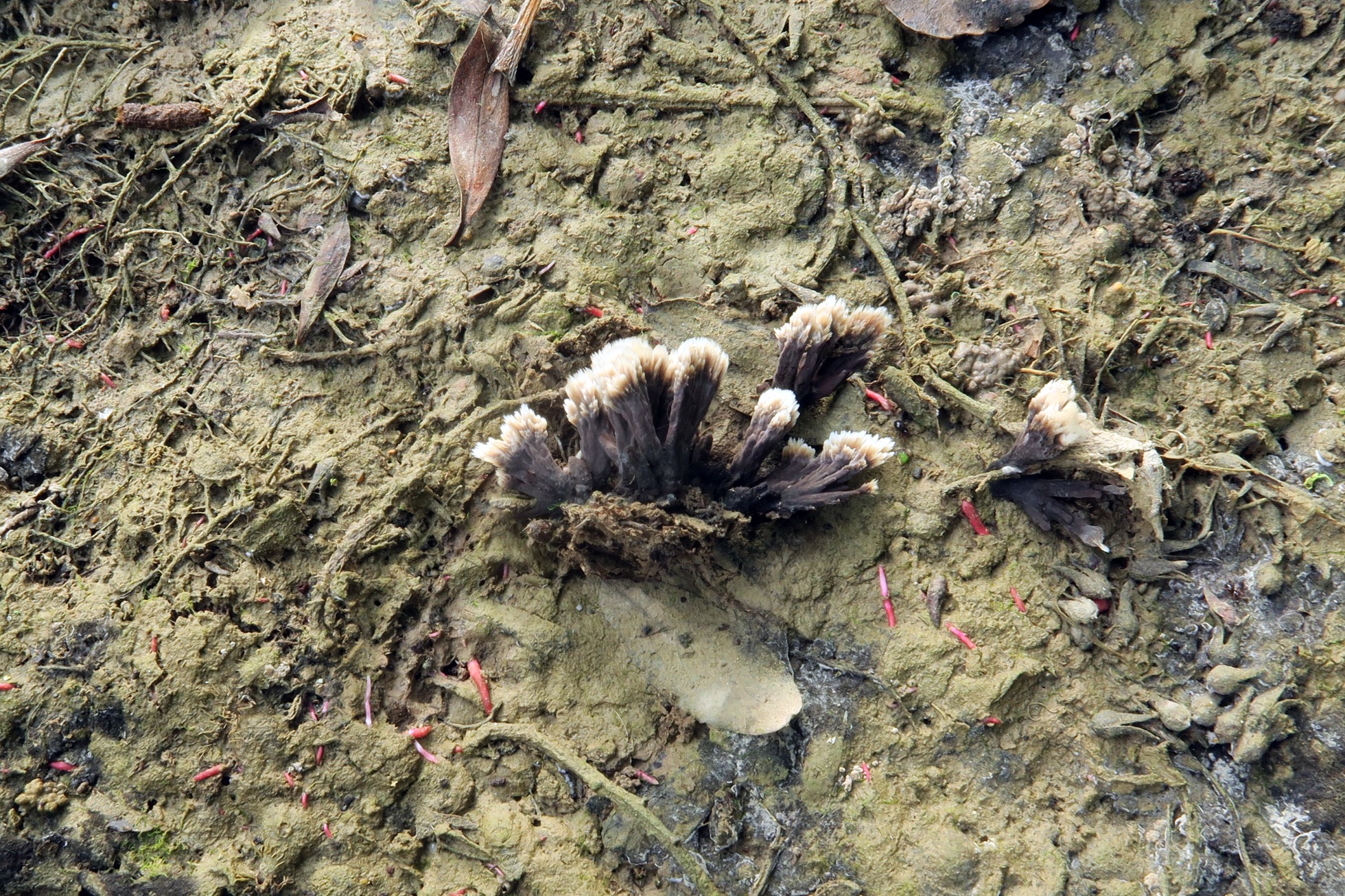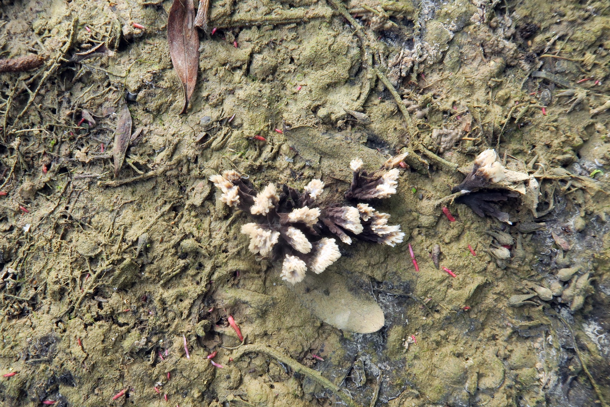 Una muy buena cantidad de ejemplares brotando de manera dispersa pero abundante sobre el suelo, que había estado cubierto de agua durante mucho tiempo por las crecidas del rio.