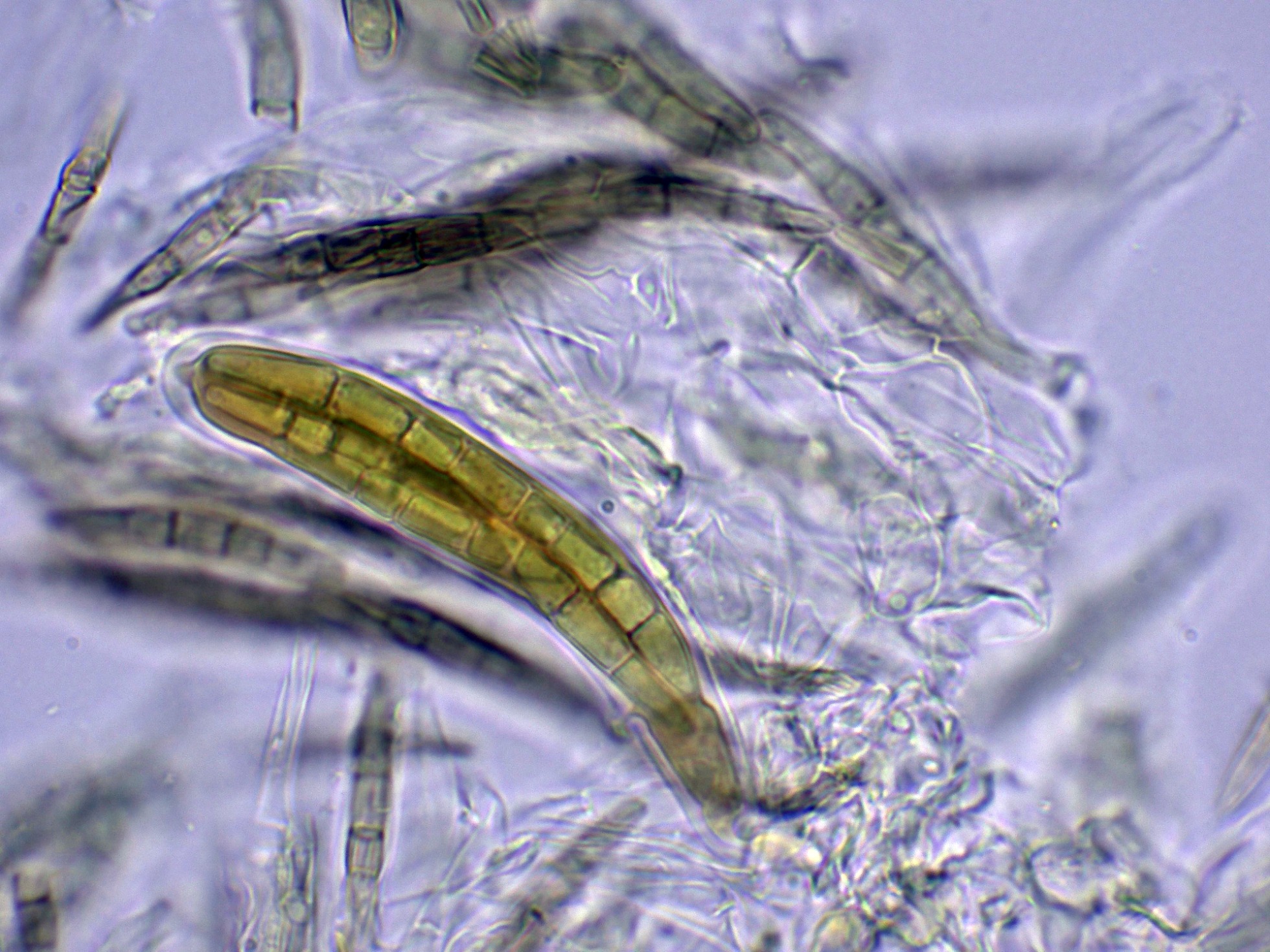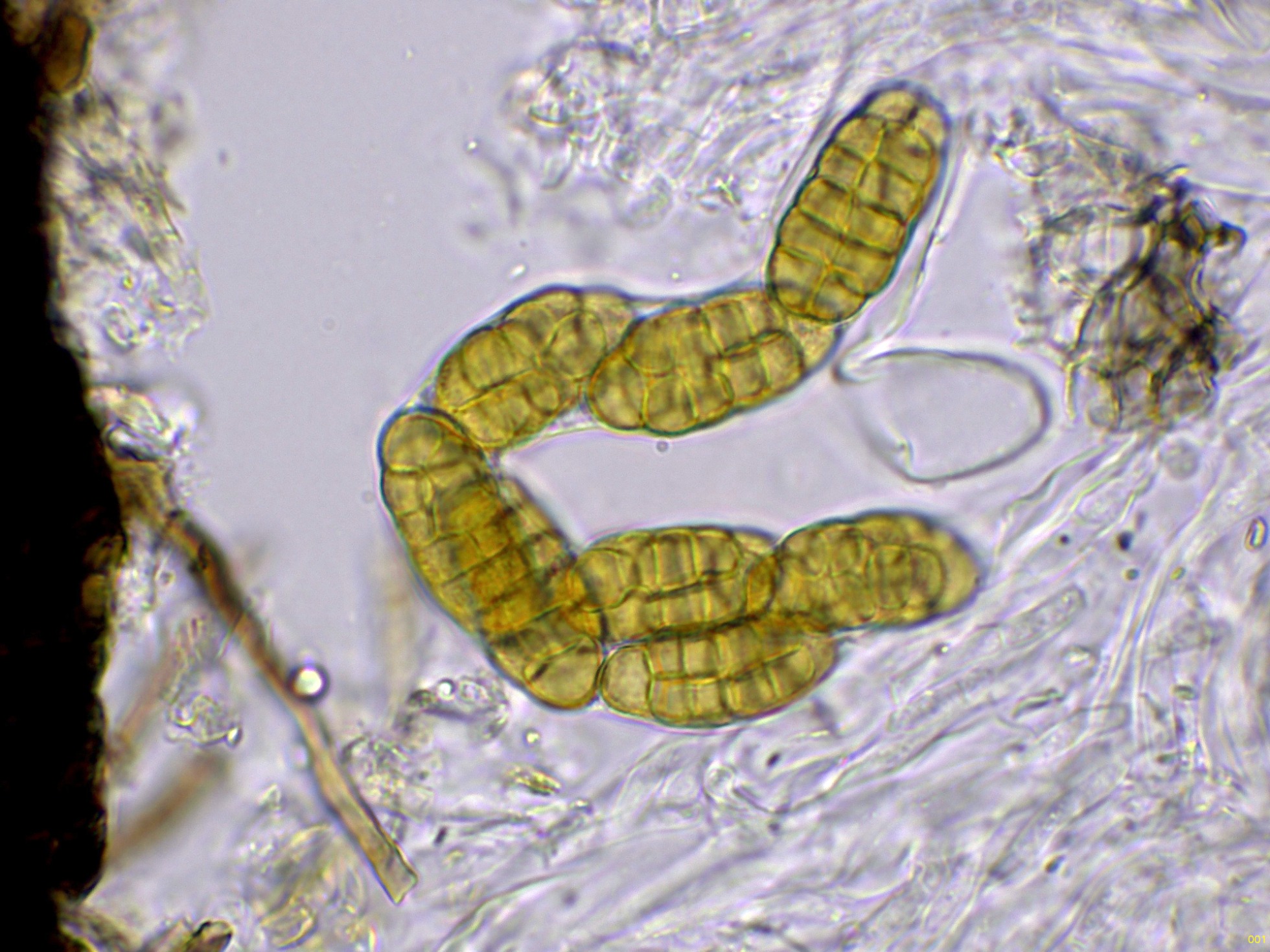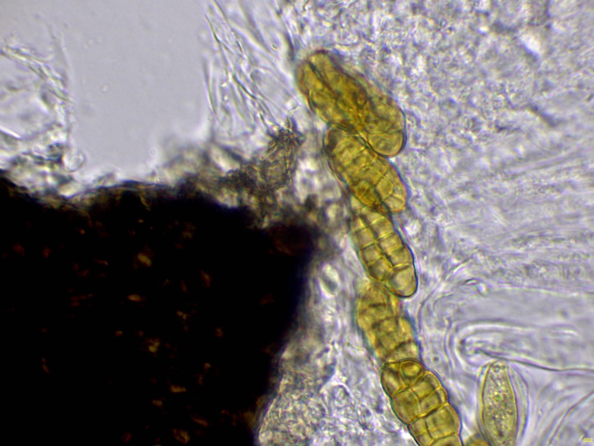 Justo al lado de la anterior y compartiendo espacio con la misma, tenemos una Cucurbitariaceae, que atendiendo a la microscopía obtenida, quizás alguna de cercana a la Cucurbitaria aff. obducens, actualmente Praetumpfia aff. obducens.