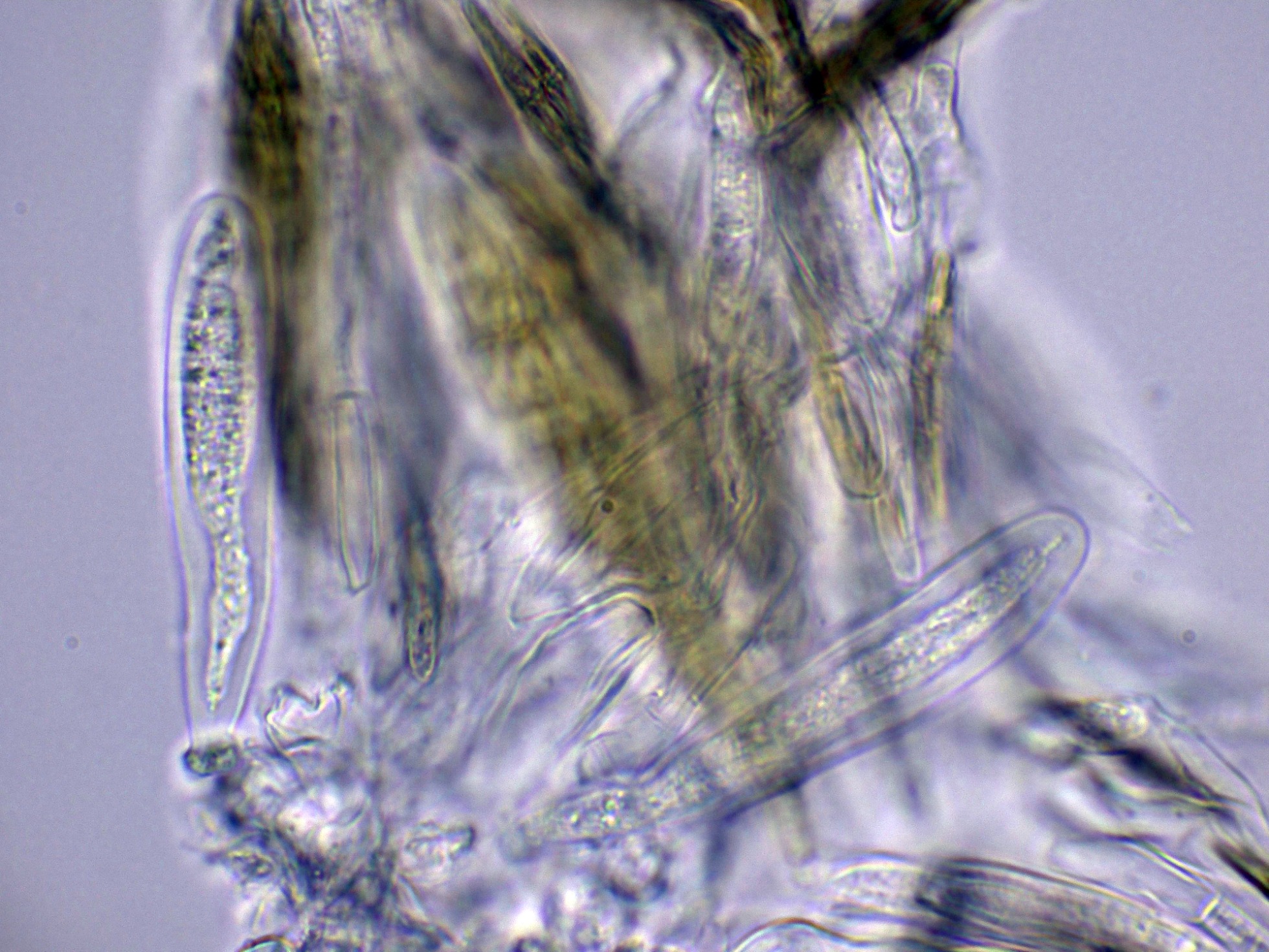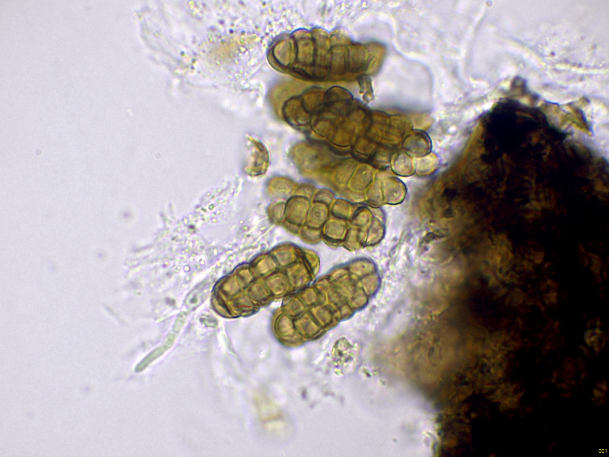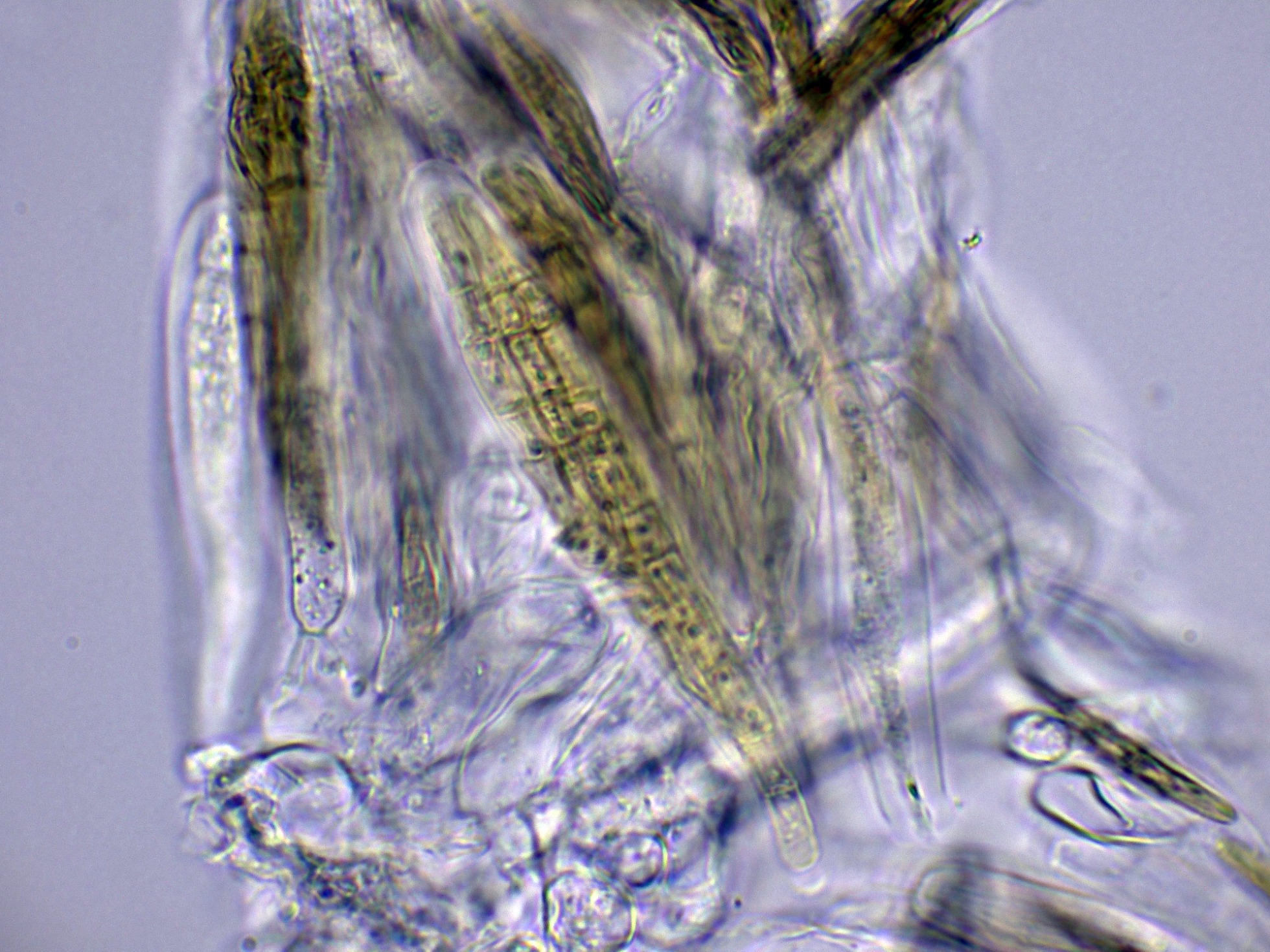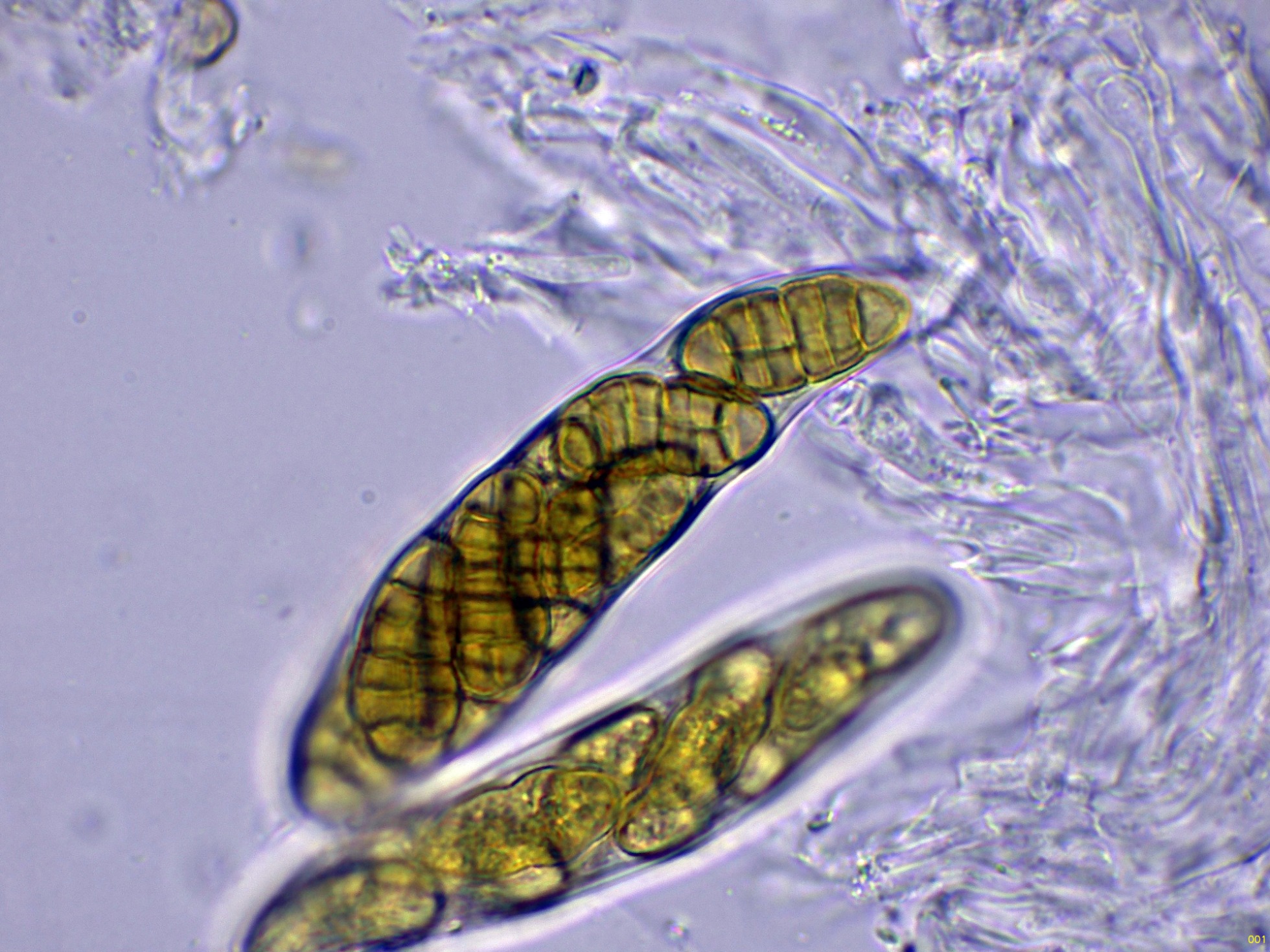 Justo al lado de la anterior y compartiendo espacio con la misma, tenemos una Cucurbitariaceae, que atendiendo a la microscopía obtenida, quizás alguna de cercana a la Cucurbitaria aff. obducens, actualmente Praetumpfia aff. obducens.