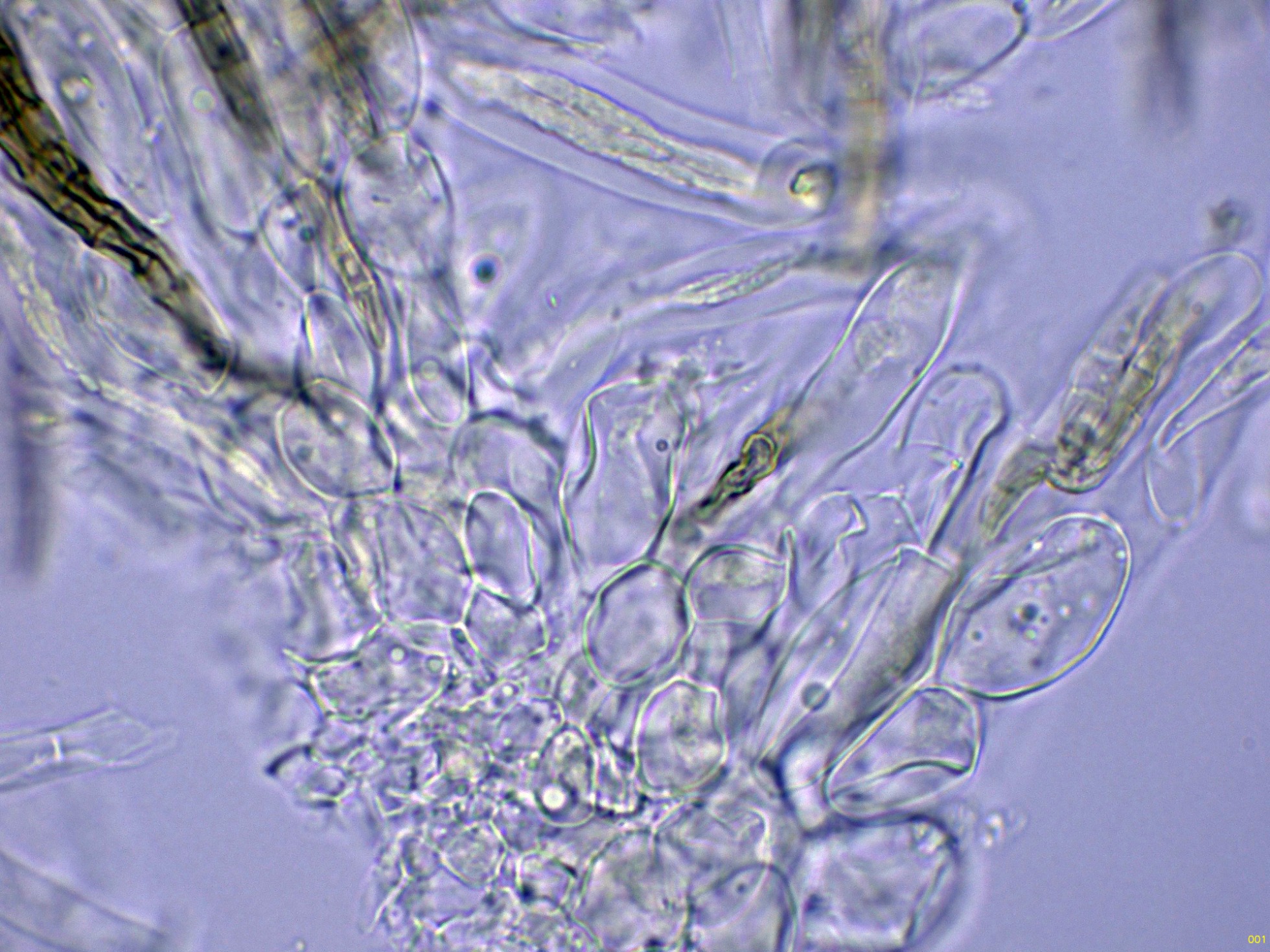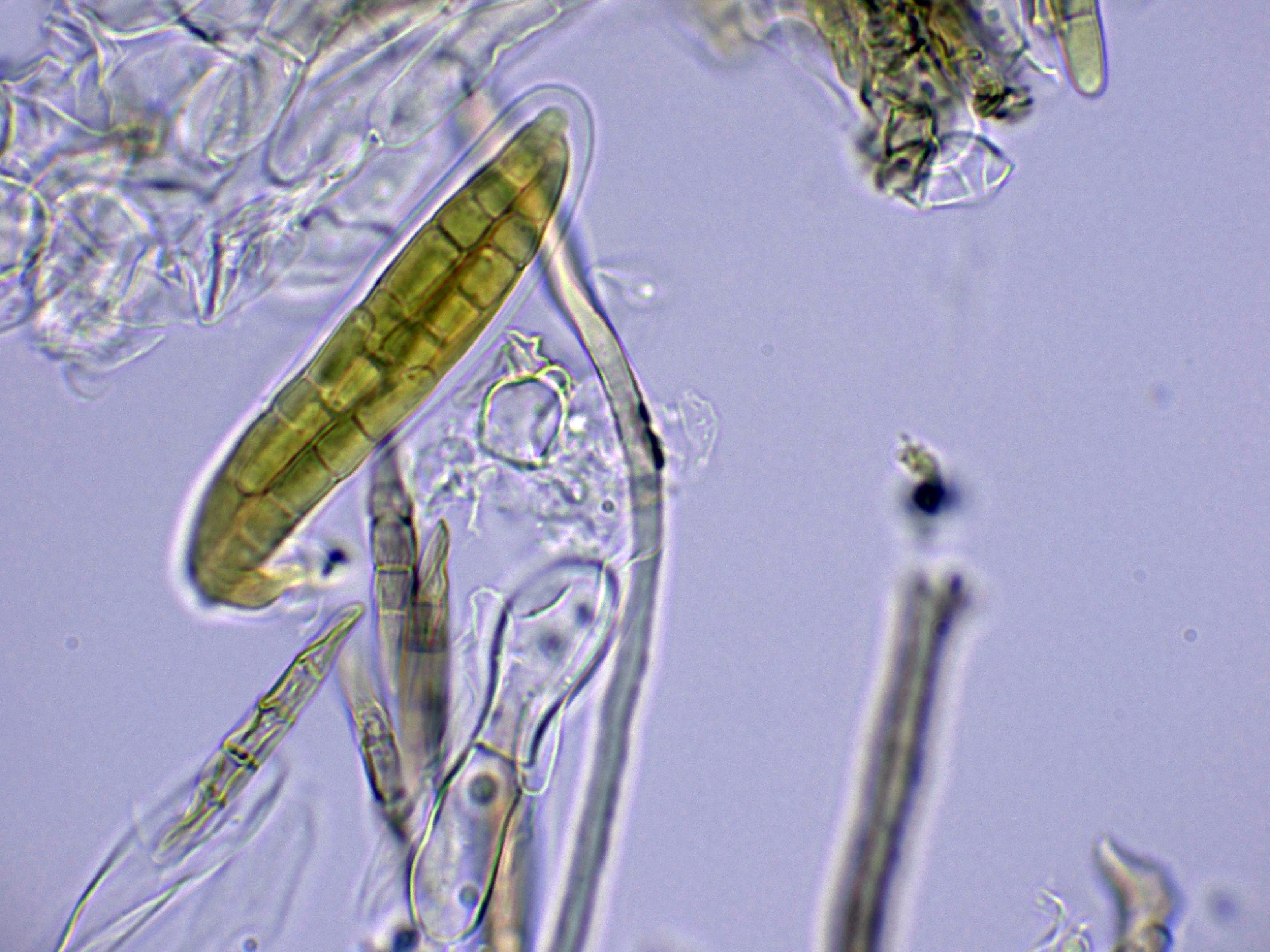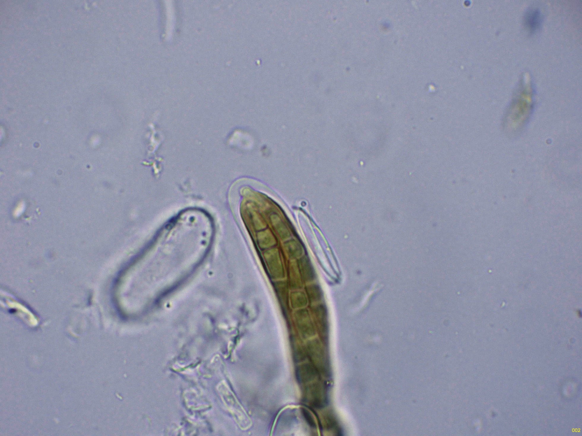 Un muy diminuto ascomiceto brotando sobre un tallo herbáceo hueco aún sujeto al suelo, agradecer a Mathías Hass su gran ayuda en la determinación de la especie.