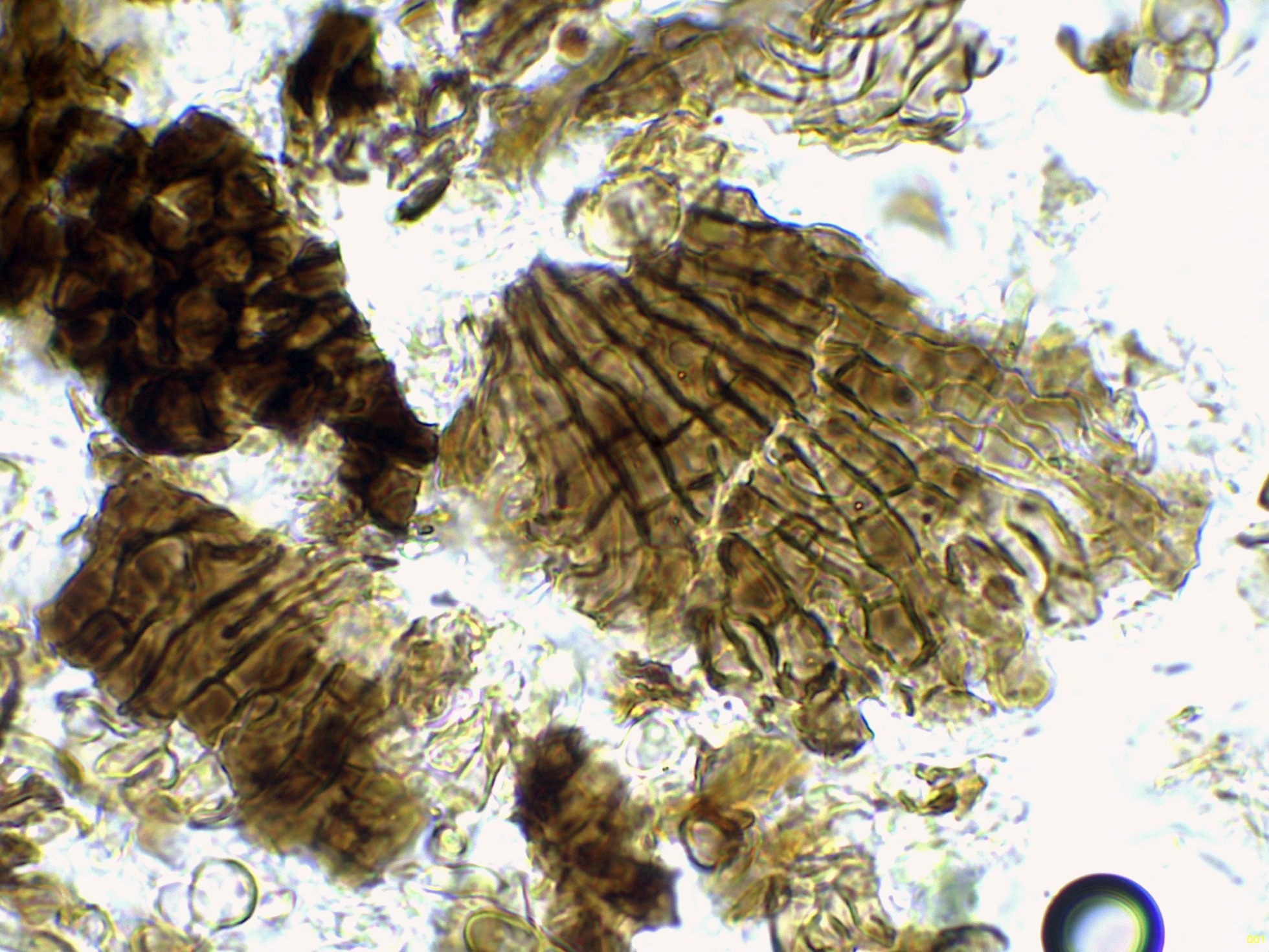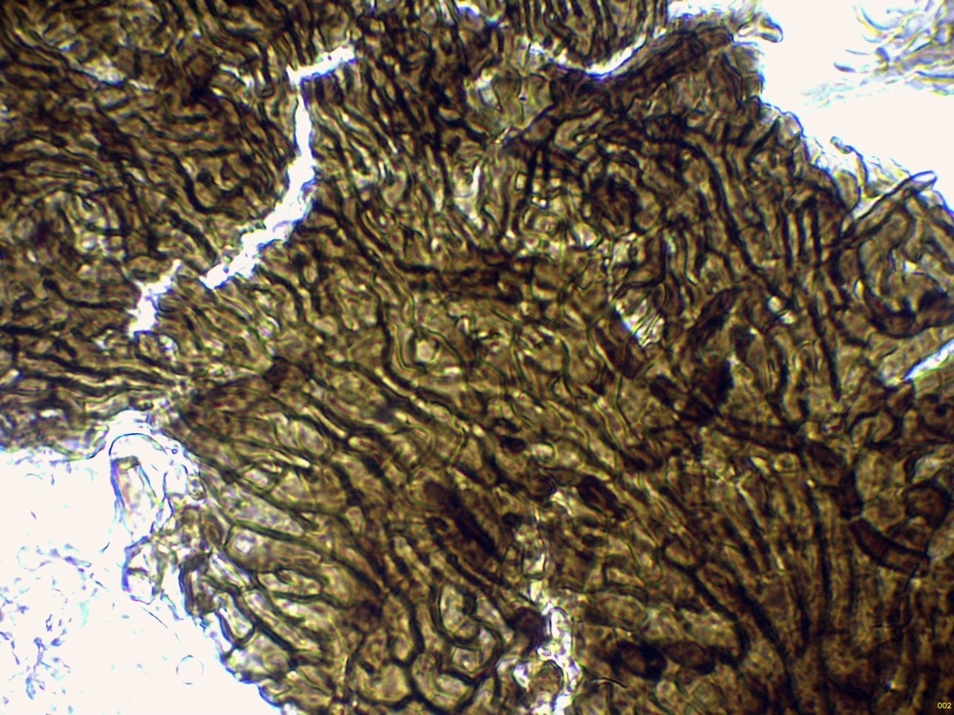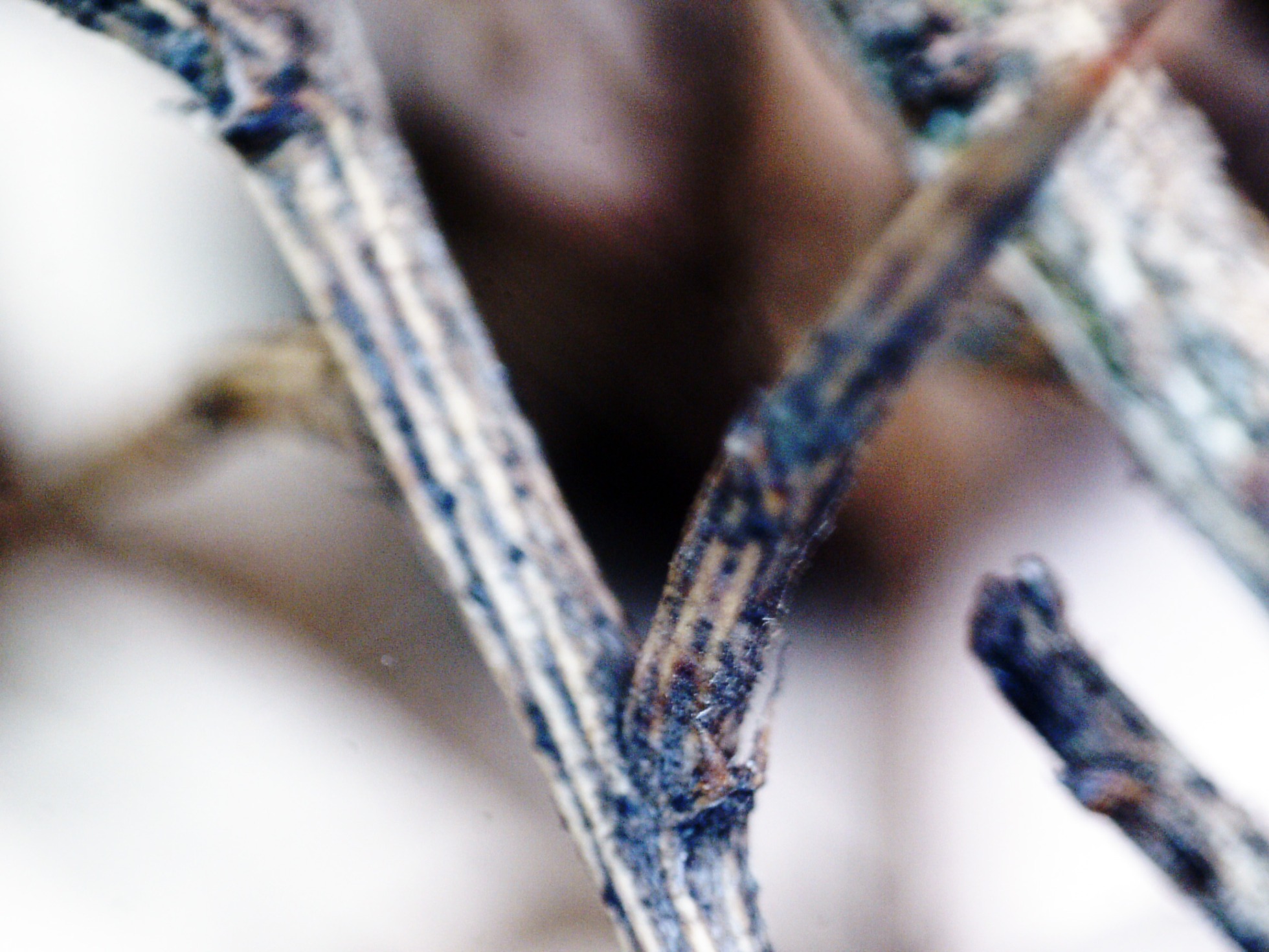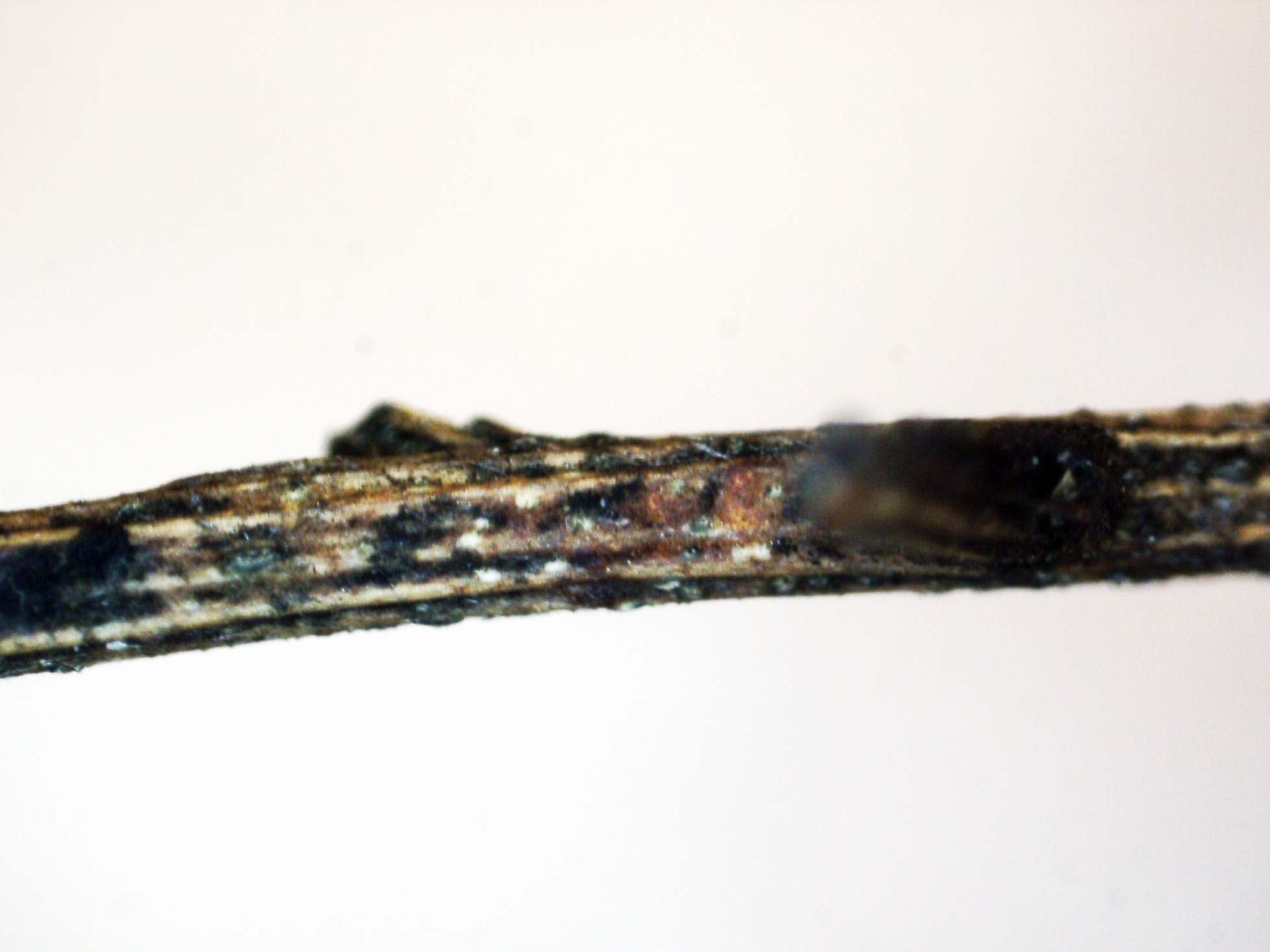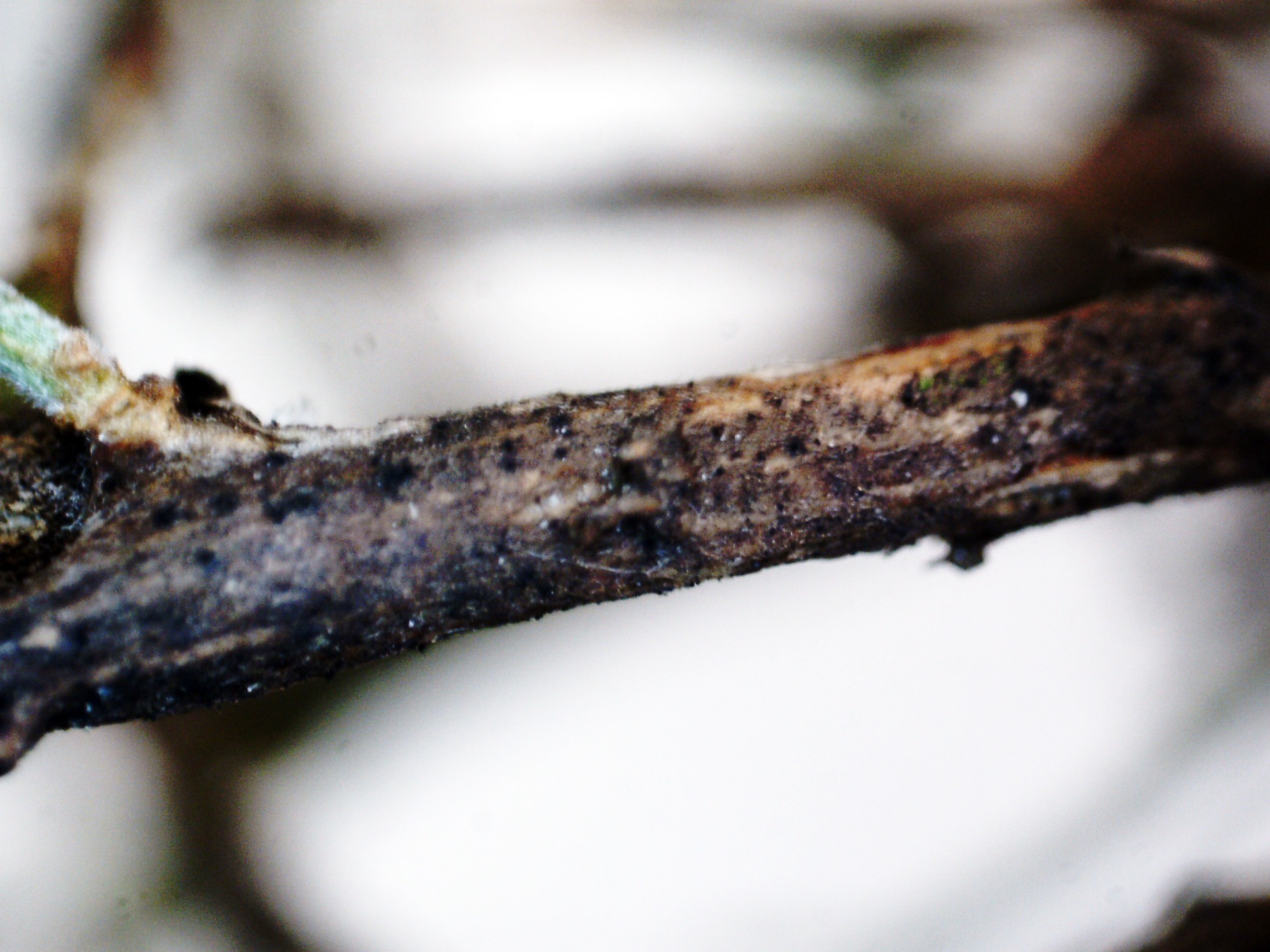 Los muy diminutos picnidios negruzcos a 20 aumentos: