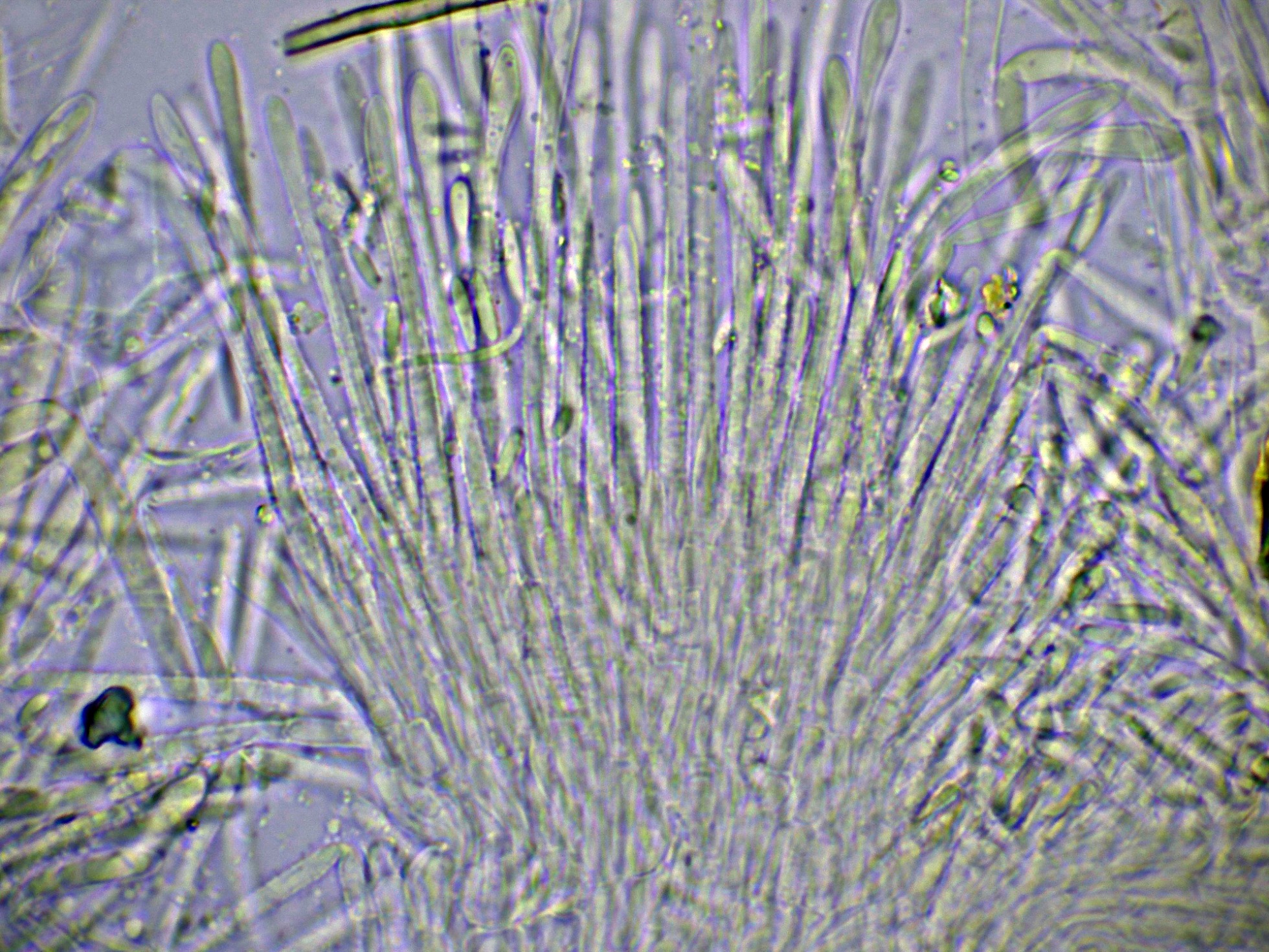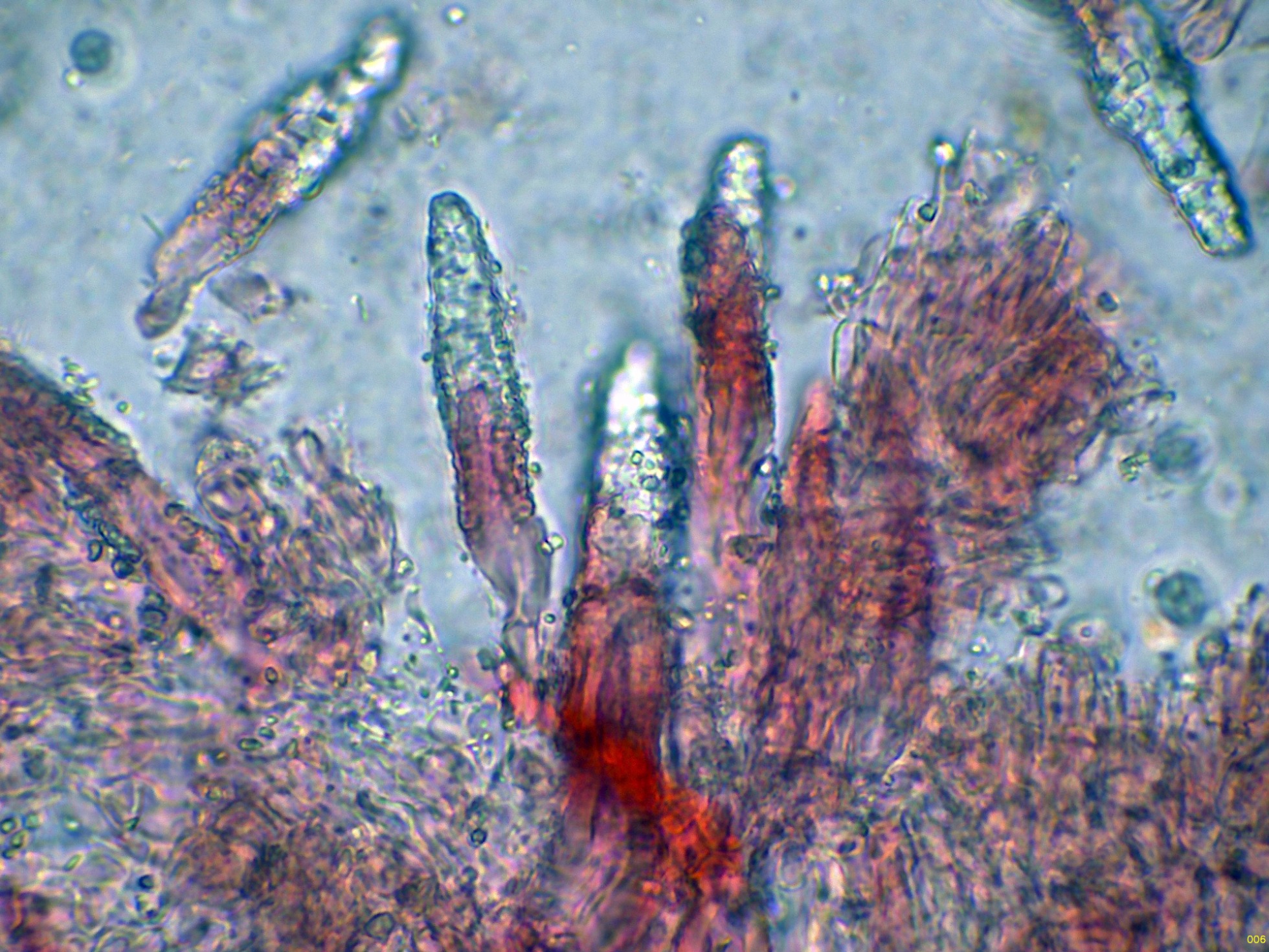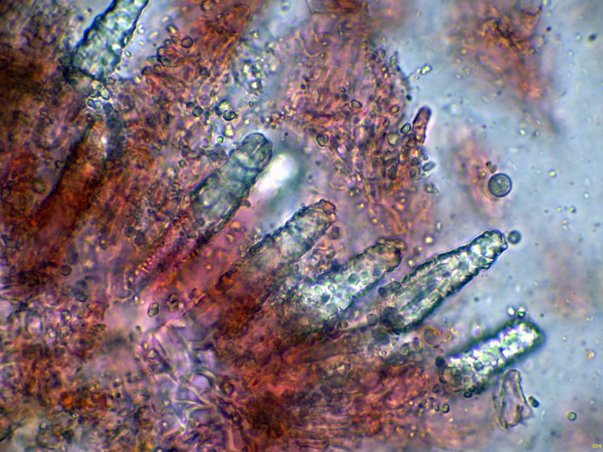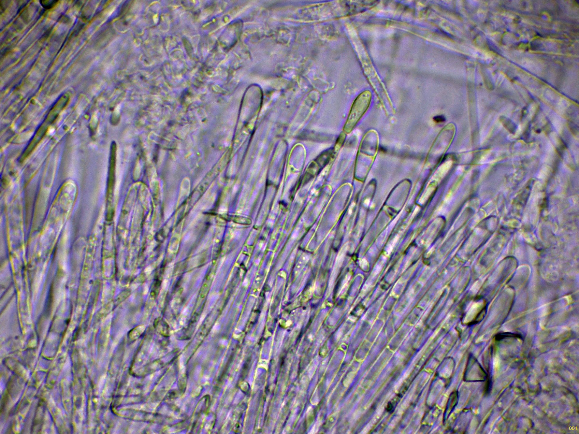 Los cistidios en solución de Rojo Congo a 400 aumentos: