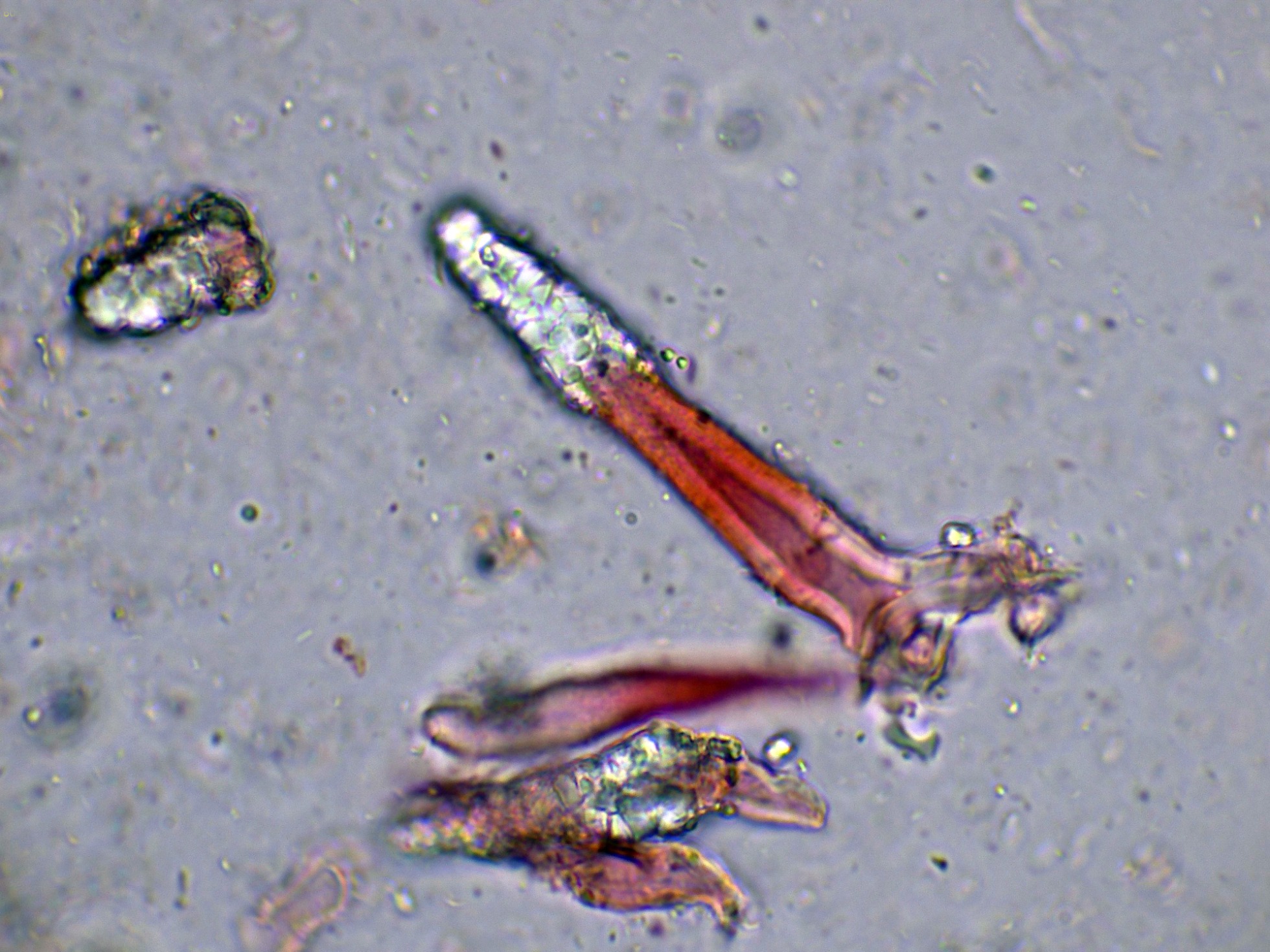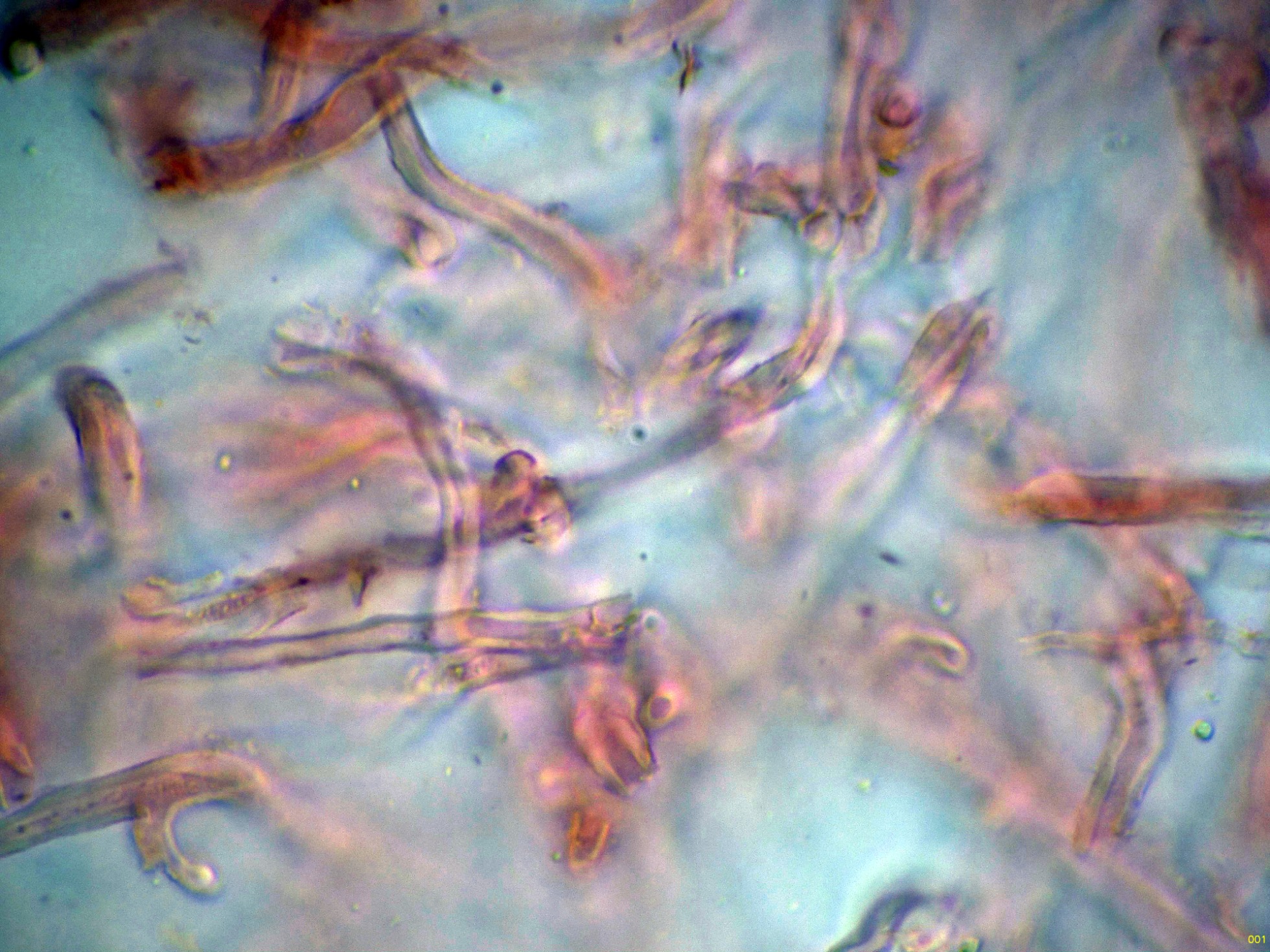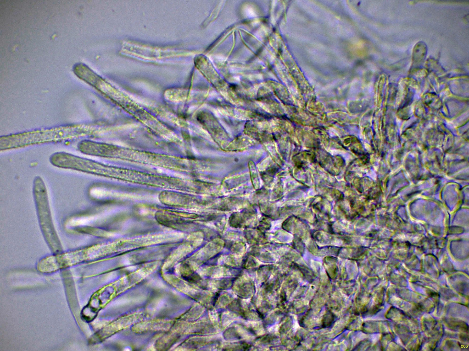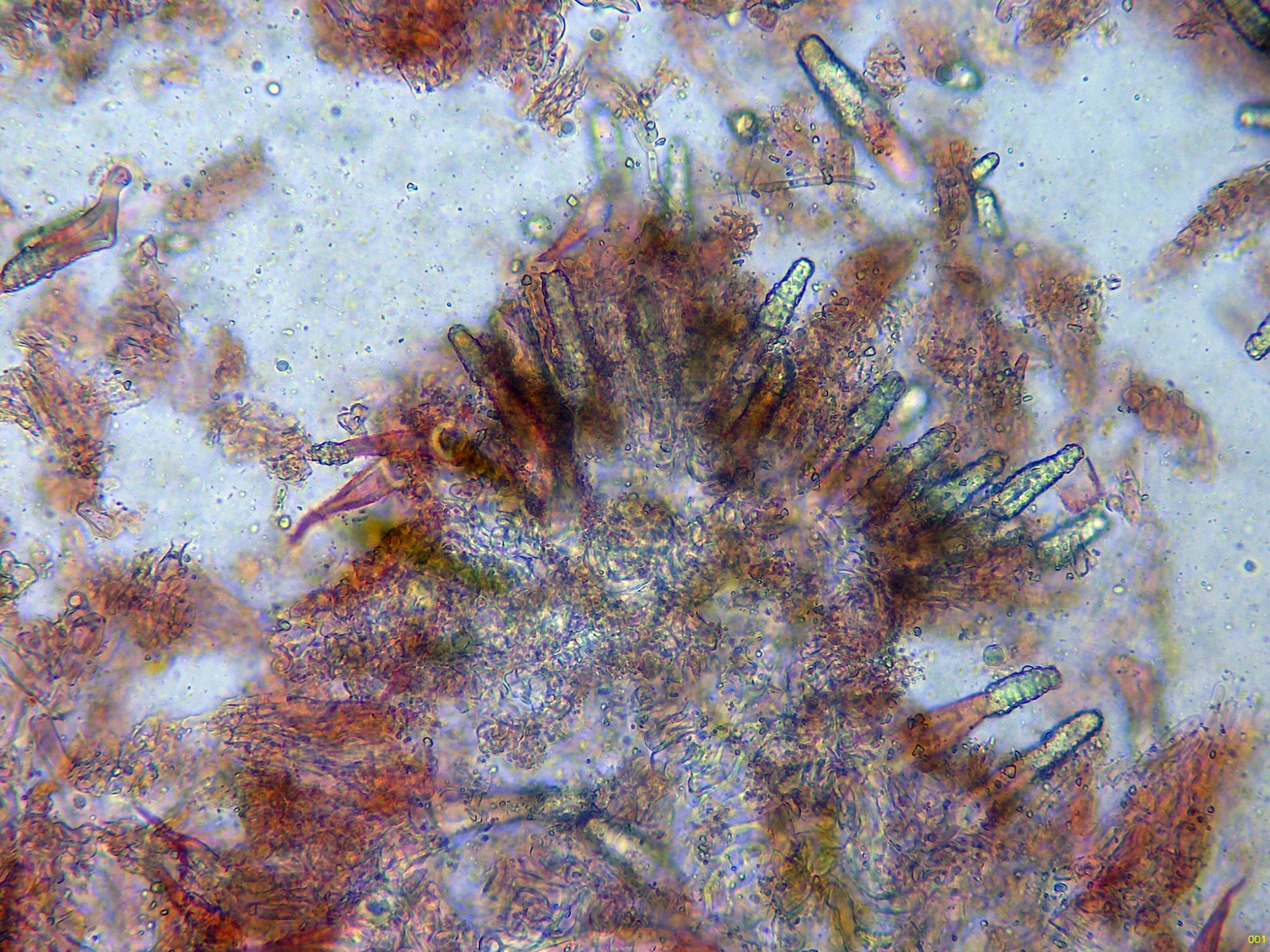 Los cistidios en solución de Rojo Congo a 400 aumentos: