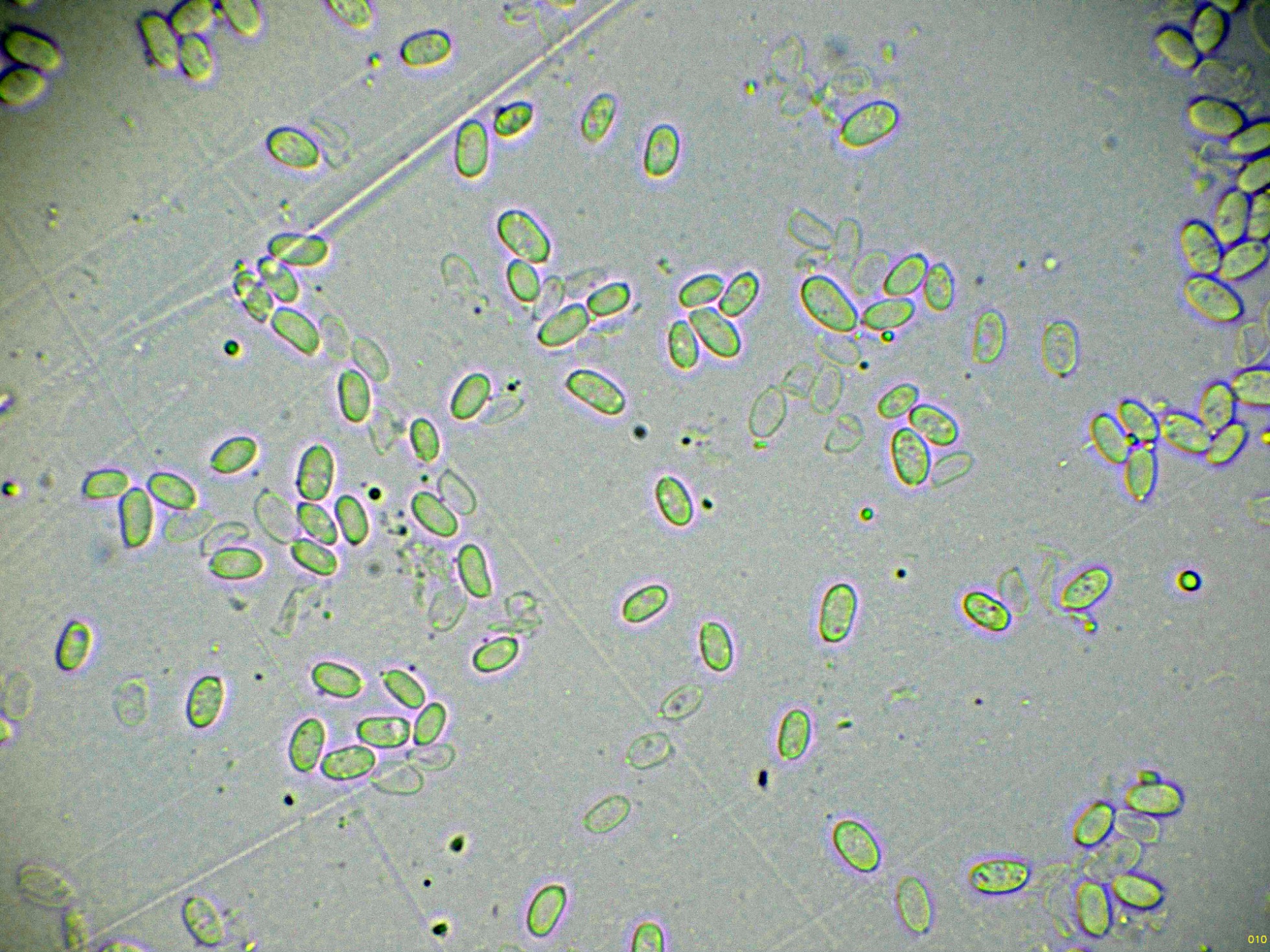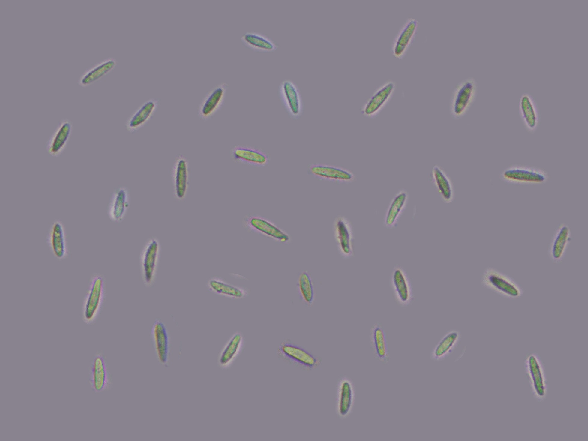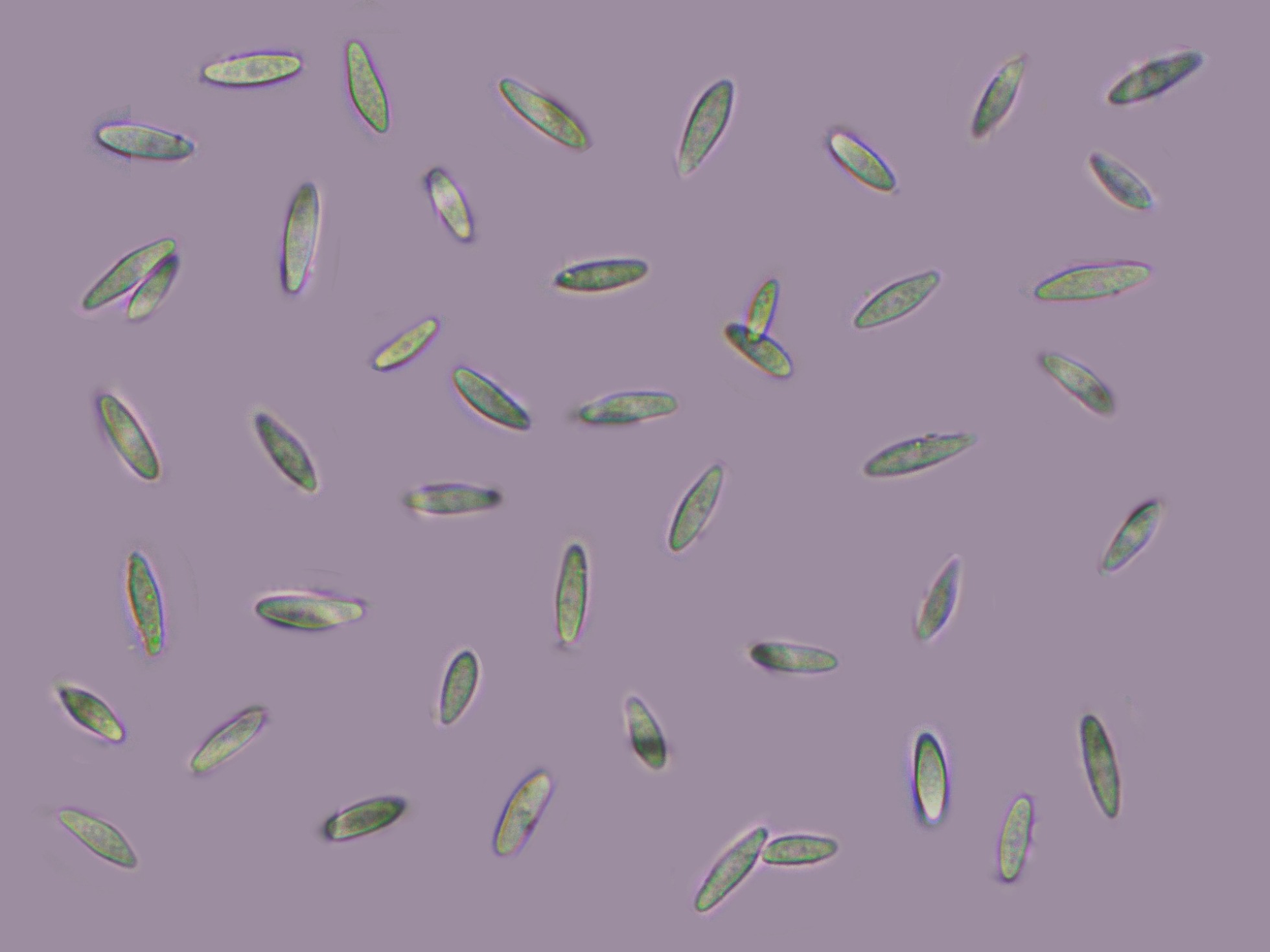Estas esporas libres con unas medidas en agua de 3.9 - 4.5 (4.6) × (1.9) 2 - 2.2 µm.