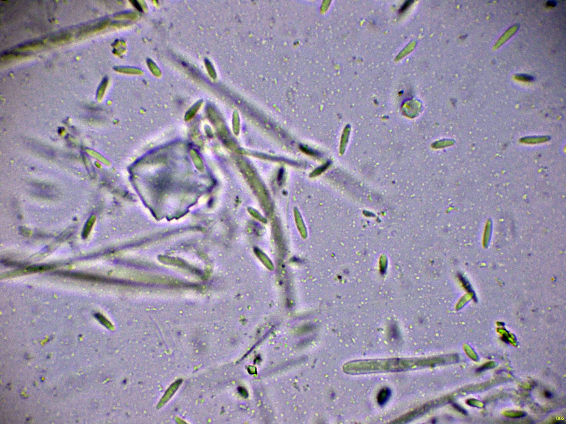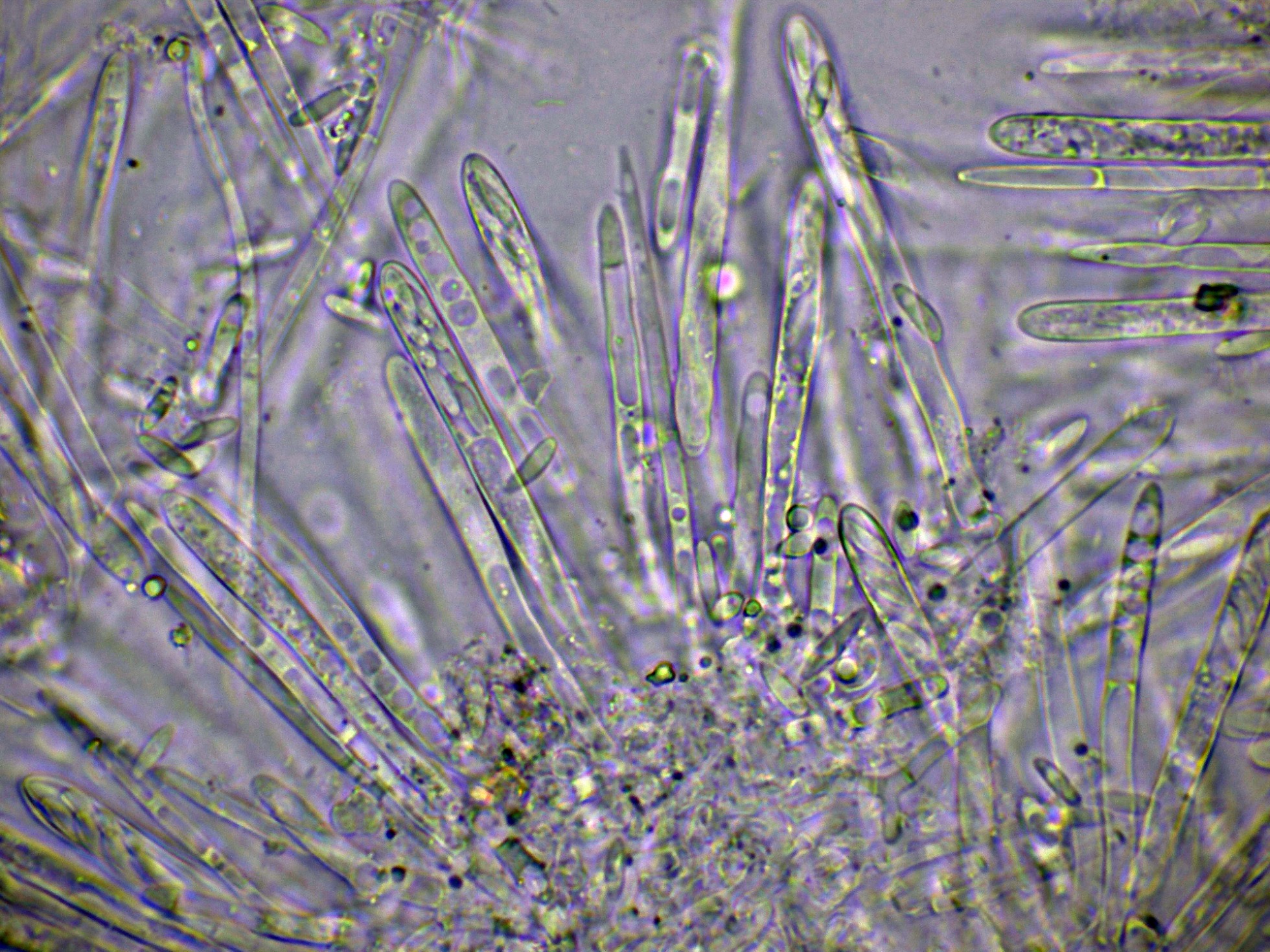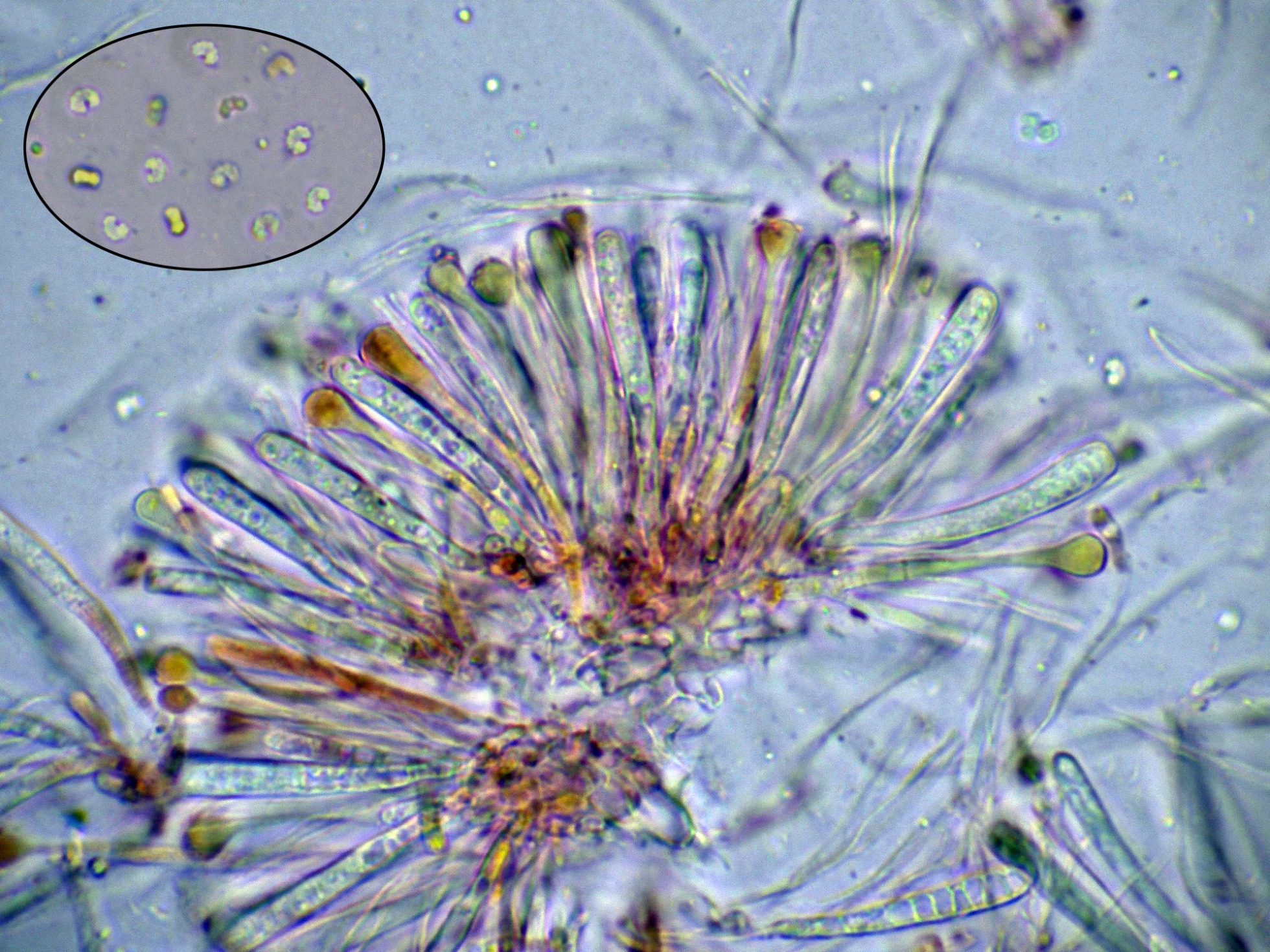Estas esporas libres con unas medidas en agua de 3.9 - 4.5 (4.6) × (1.9) 2 - 2.2 µm.