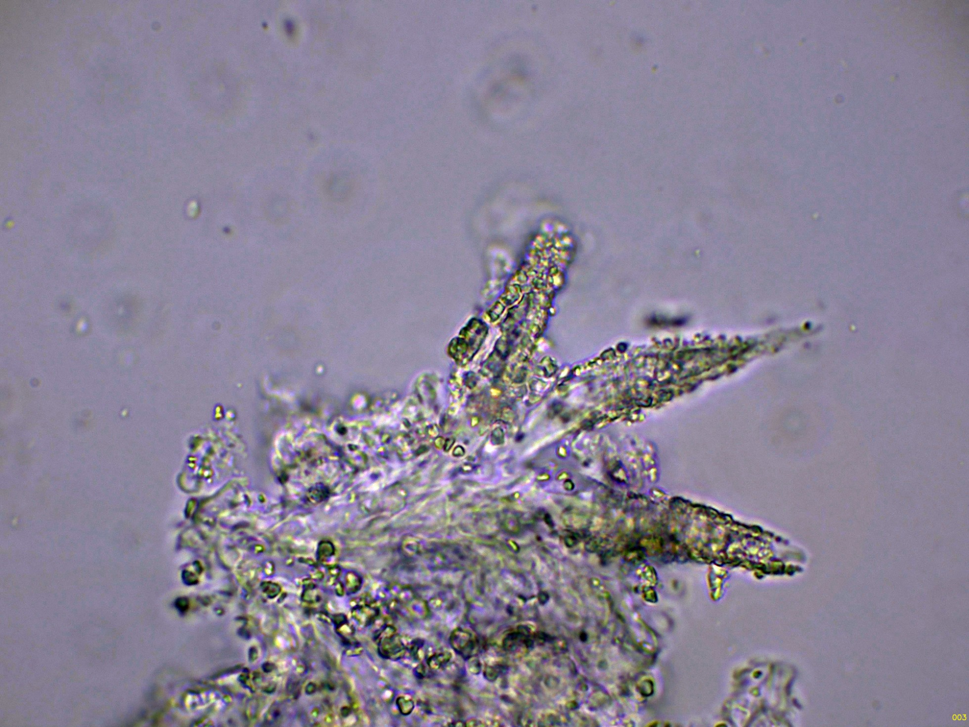 Los pelos marginales en agua, estos pelos con unas medidas de (47.3) 54.5 - 70.6 (71.3) × (3.4) 3.8 - 4.3 (4.7) µm.