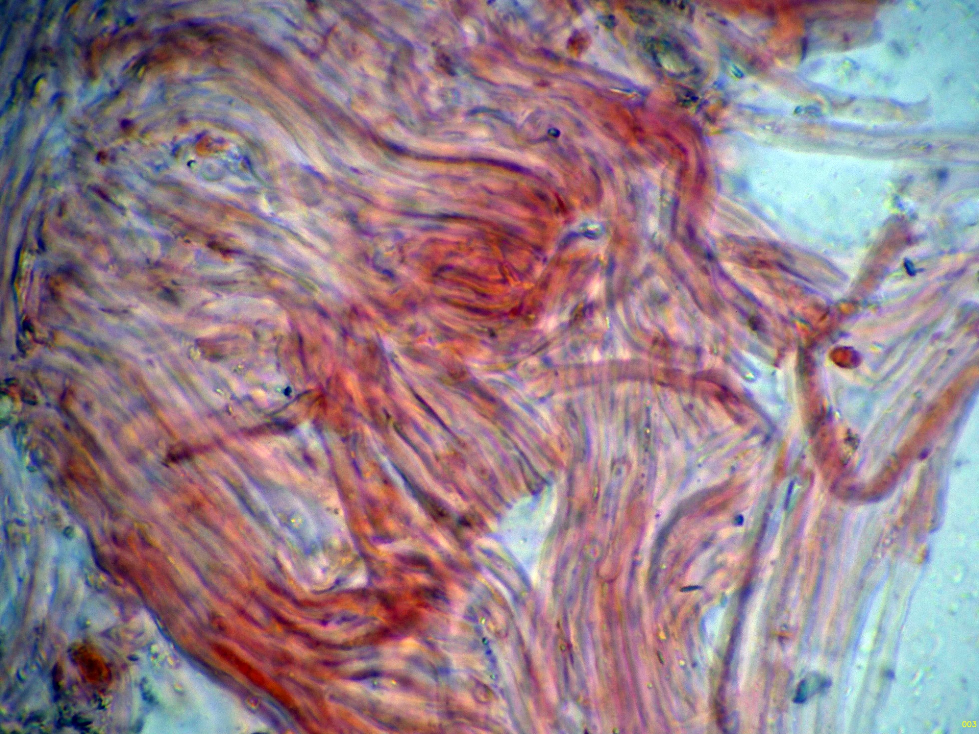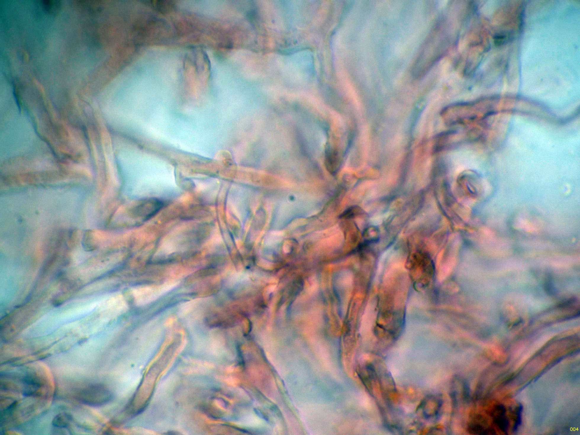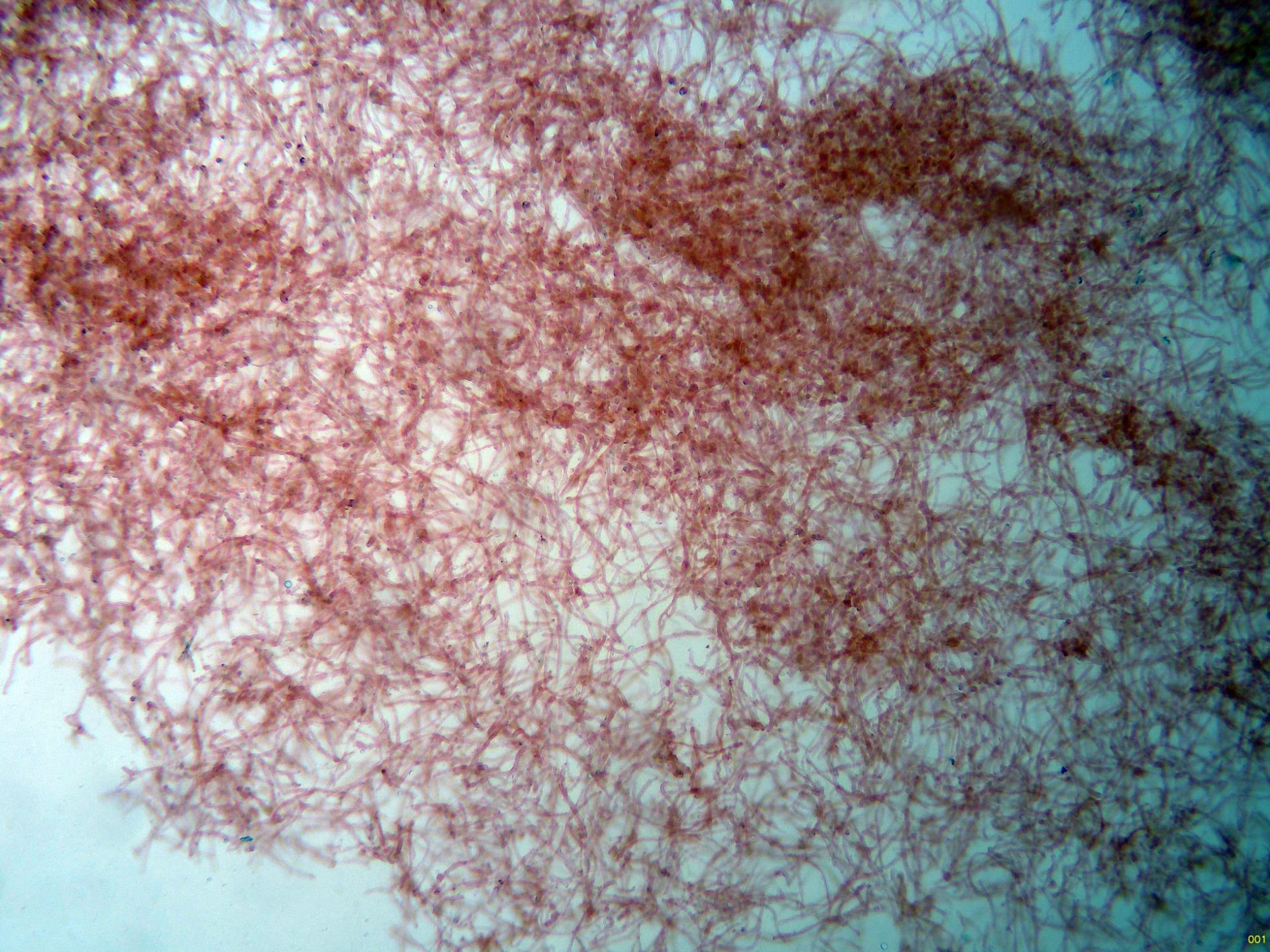 Las hifas de la suprapellis en solución de Rojo Congo a 100 aumentos: