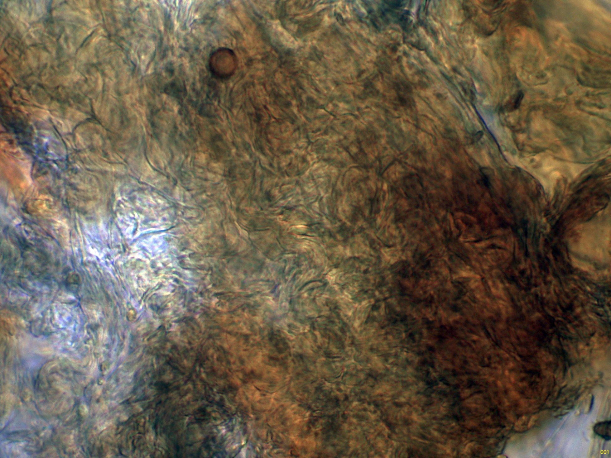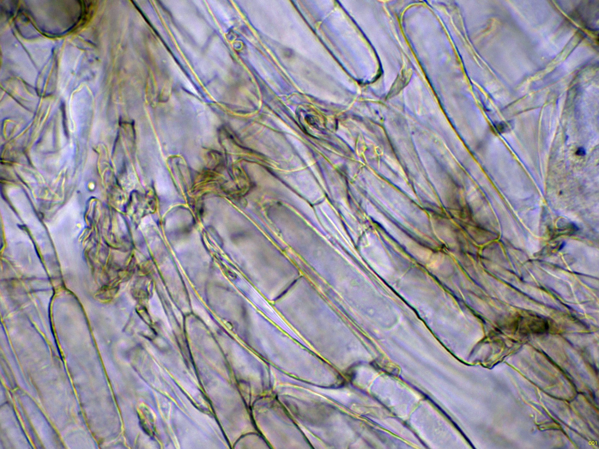 Las hifas del excípulo medular en Reactivo de Melzer: