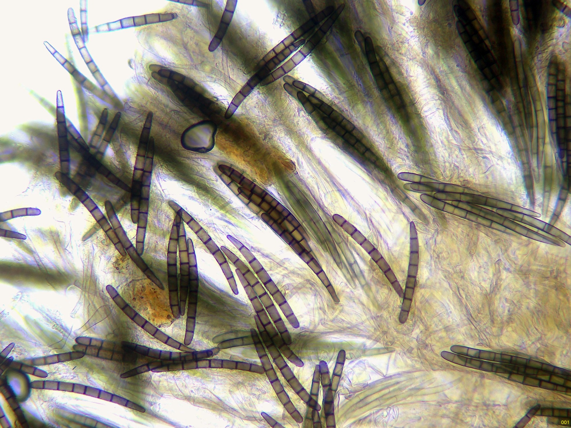 El himenio en Reactivo de Melzer a 400 aumentos: