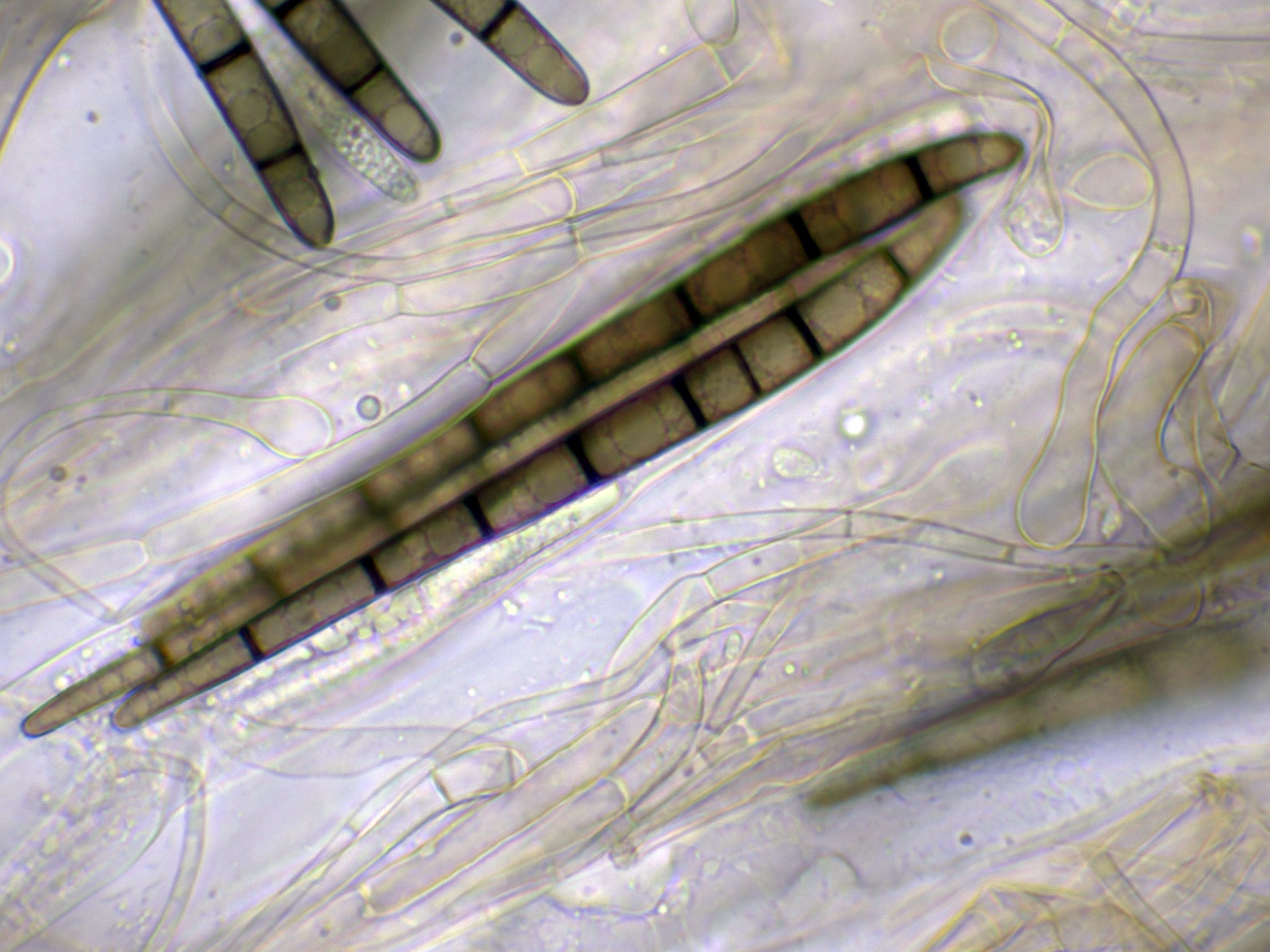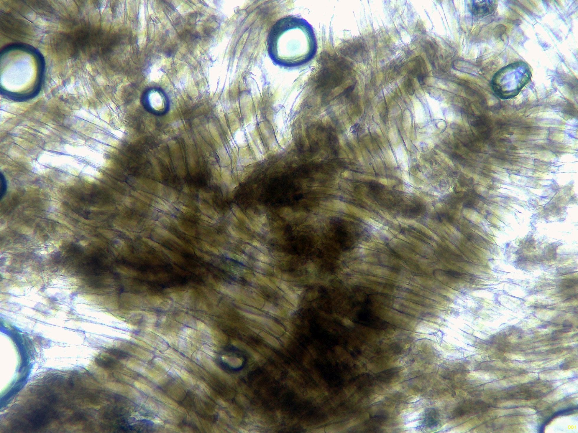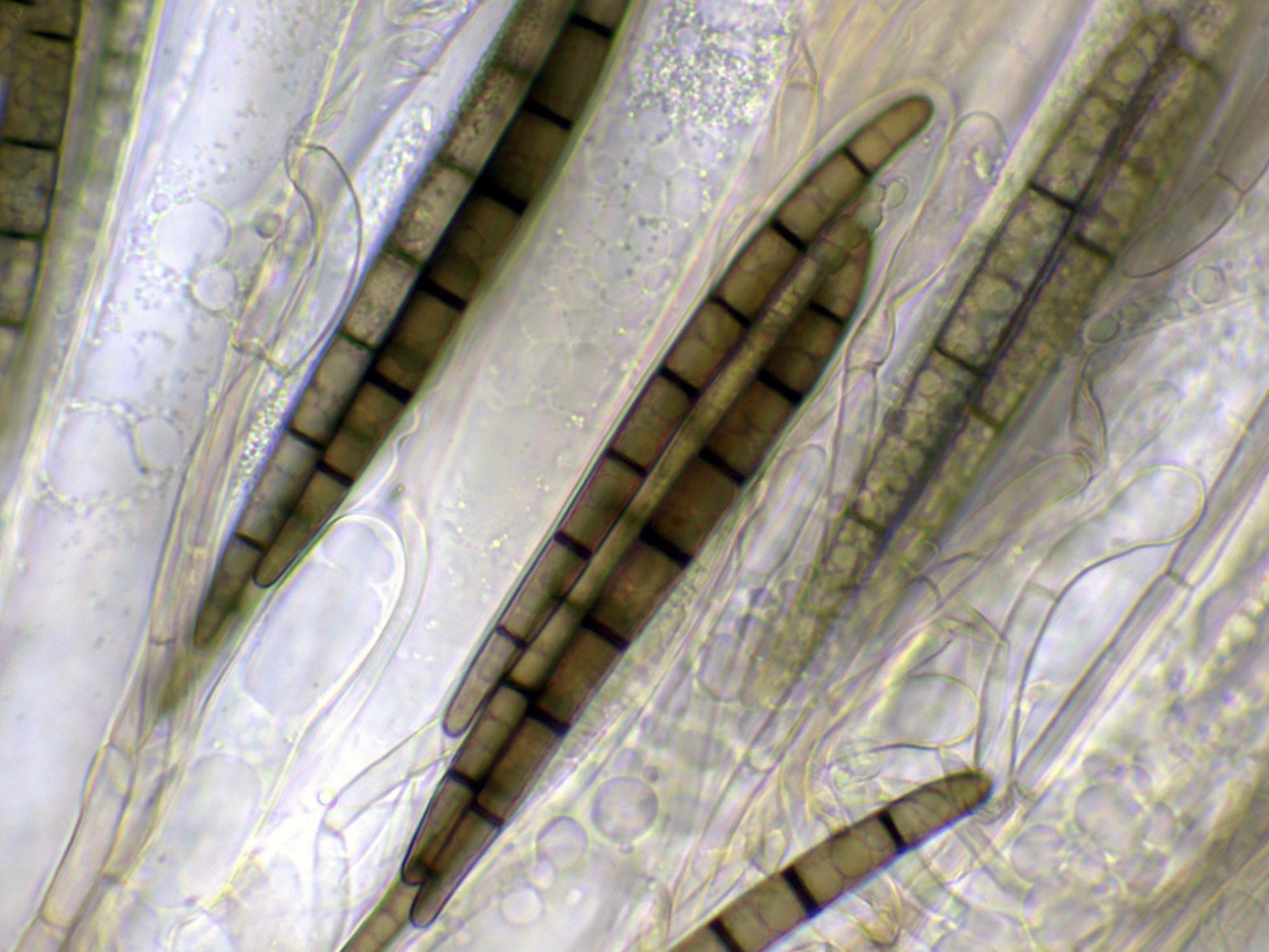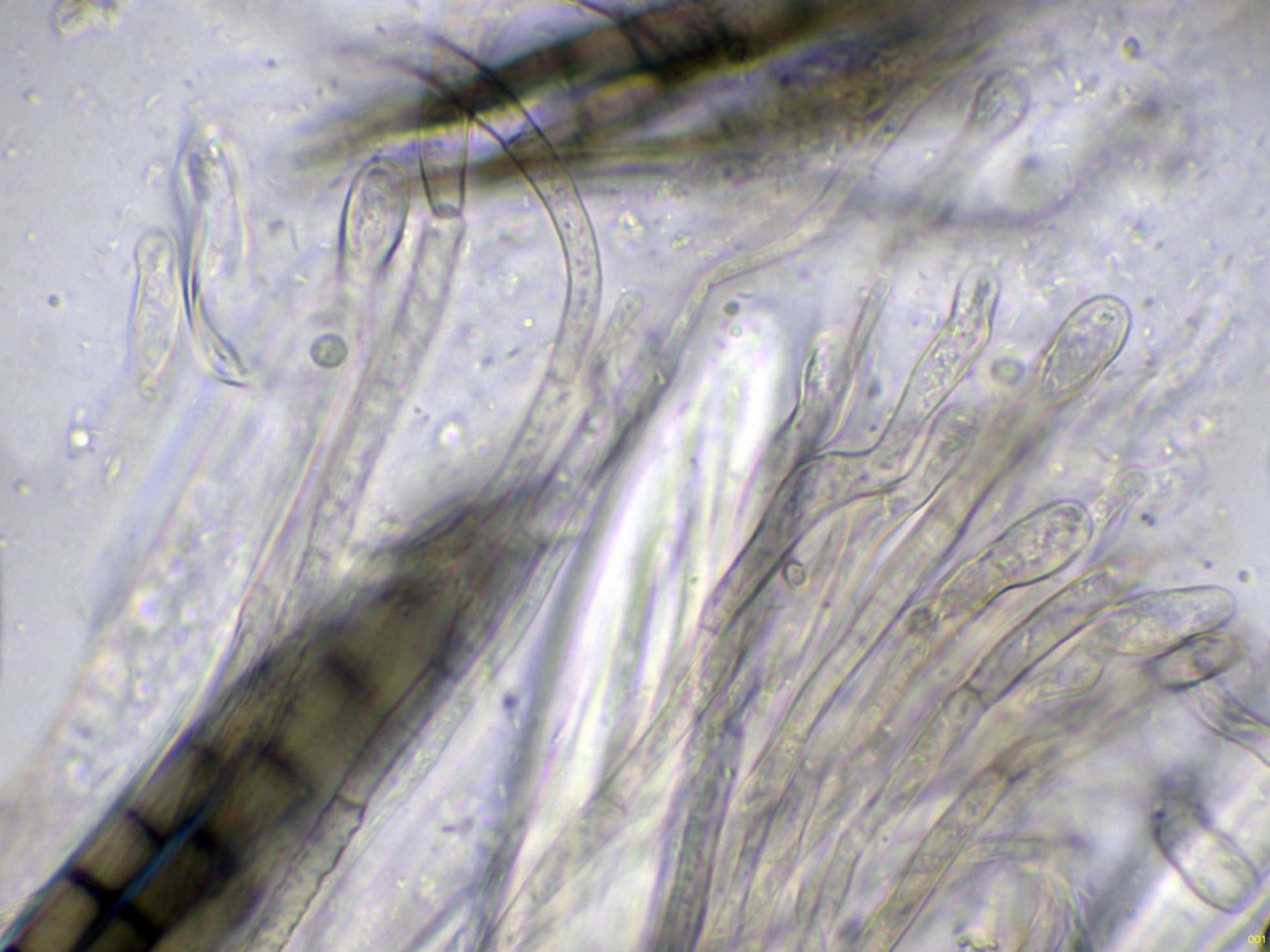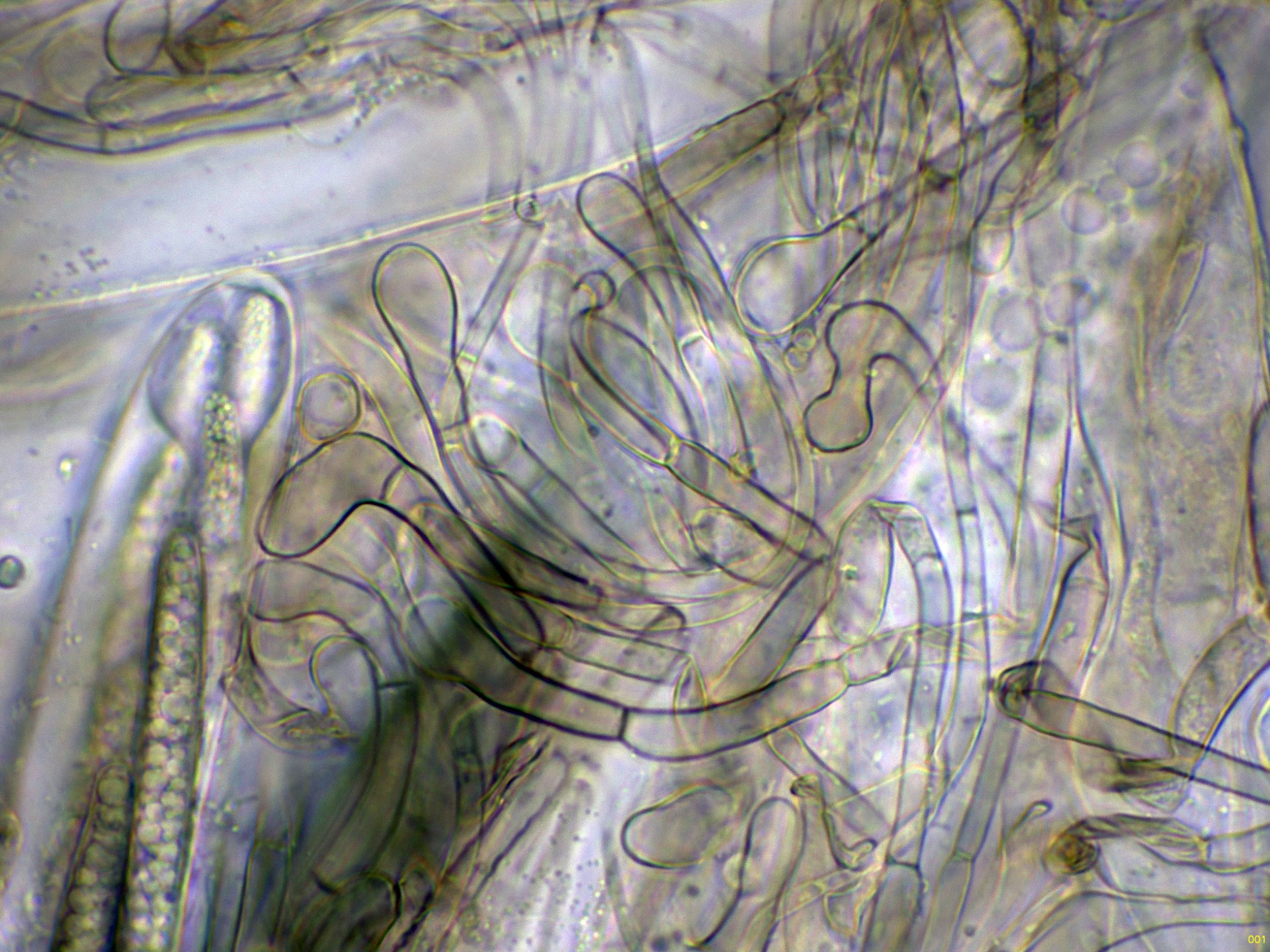 Las hifas del excípulo a 400 aumentos en agua: